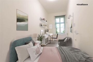 PRODÁNO - Představujeme k prodeji prostorný byt o celkové podlahové ploše 113,72 m2 v centru města Plzně, v Jagellonské ulici. Samostatná stránka bytu: byt-jagellonska.cz Byt je situovaný ve zvýšeném přízemí cihlového domu. Je řešený tak, že po vstupu do bytu se ocitneme v prostoné chodbě, odkud vede vstup na WC, do komory, nově zrekonstruovaného pokoje a velikého obývacího pokoje s krbem. Z obývacího pokoje vejdeme do kuchyně s úložným prostorem v patře, dále do koupelny, poté z koupelny do dalšího nově zrekonstruovaného pokoje a z něj do pokoje, již zmíněného, přístupného z chodby. Byt je tedy celý kolem dokola průchozí. Část bytu (dva pokoje, chodba a toaleta) byla přede dvěmi zrekonstruovaná (podlahy, omítky, podlahové vytápění, rozvod elektrické energie) z důvodu provozu masérny. Byt lze tedy využít buď plně na bydlení, či jako kombinace bydlení s podnikáním. V celém bytě je vyměněna elektroinstalace do mědi. Dle prohlášení vlastníka má byt podlahovou plochu 113,72 m2 včetně 26,85 m2 velikého sklepa. K bytu je možné využívat další sklep o velikosti 3,4 m2. Čistá podlahová plocha bytu po odečtení velikého sklepa je tedy 86,87 m2. Voda je do bytu zavedena z městského vodovodu, ohřívaná je elektrickým bojlerem. Vytápění v bytě zajišťují akumulační kamna a v nově ztrekonstruovaných místnostech je zajištěno elektrické podlahové vytápění. Plyn je do bytu zaveden, však nevyužíván. V obývacím pokoji je navíc krb, který vám navodí v zimních měsících příjemnou atmosféru. Okna jsou v bytě plastová, orientovaná na jih (obývací pokoj, kuchyně) a sever (dva pokoje). Internet je do bytu zavedený od společnosti Pilsfree a parkovat lze na veřejném parkovišti v okolí domu. Jestliže hledáte veliký byt a uvítáte jeho atypičnost a umístění v centru města, zavolejte mi a nebo napište a já vám ho ráda ukážu. Pro koupi bytu zajistím kompletní realitní a právní servis a financování hypotečním úvěrem. Hana Procházková TAURUM reality