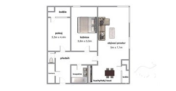 PRODÁNO - Představuji k prodeji byt o dispozici 3+kk o podlahové ploše 105,9 m2 na klidném místě v zánovním bytovém domě v Plzni na Sylvánu na adrese Slupská 2. Podívejte se na samostatnou stránku bytu: https://byt–slupska.cz Kompletní detaily bytu můžete vidět na 3D virtuální prohlídce zde v inzerátu. Cihlový dům, ve kterém se byt nachází, je z roku 2006, je ve velmi dobrém stavu, je na klidném místě v zástavbě zánovních bytových domů s vynikající dopravní dostupností a blízko občanské vybavenosti. Před domem je rozlehlý otevřený travnatý prostor, za domem je klidný vnitroblok. V domě jsou v suterénu garážová stání do kterých je vjezd zajištěn vraty na dálkové ovládání. Jedno toto kryté garážové stání (12,3 m2) náleží k prodávanému bytu a je tedy součástí ceny. Dispozice bytu: Byt je o dispozici 3+kk a výměře 105,9 m2. Dále jsou v bytě 2 pěkné prostorné lodžie, každá o výměře cca 6 m2. Za vstupními dveřmi do bytu je předsíň, ze které vedou vstupy do 3 neprůchozích pokojů (obývací pokoj je propojen s kuchyňským koutem), koupelny, komory a samostatného wc. Shrunutí výměr: - byt 105,9 m2 - plus lodžie 6 m2 a 6,3m2 - plus garážové stání 12,3 m2 Technické informace: Vytápění i ohřev teplé vody jsou v bytě řešeny dálkově, v jednotlivých místnostech jsou radiátory. Byt je napojený na plynovou přípojku. Okna v bytě jsou plastová, podlahy: dlažba (koupelna, wc, předsíň), plovoucí lamino (pokoje). Orientace oken je na východní a jižní stranu. Internet je připojen přes Pilsfree. Byt doporučuji zejména díky jeho dobrému stavu, velké ploše, 2 lodžiím a garážovému stání. Pro koupi bytu zajistím kompletní realitní a právní servis a případně financování hypotečním úvěrem. V případě více zájemců bude byt prodán zájemci, kteří předložení výhodnější nabídku. Kontaktujte mne prosím pro domluveni prohlídky: Jan Štěpánek TAURUM reality