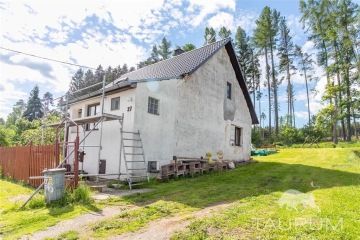 PRODÁNO - Představuji k prodeji dům po částečné rekonstrukci na krásném místě na kraji lesa s pěkným výhledem ze zahrady na adrese Myť 27, Ždírec, pár minut jízdy od Blovic. Podívejte se na samostatnou stránku domu: https://dum-myt.cz Obec Myť je výborně dopravně dostupná. Do obce jezdí vlak i autobus. Autem je to 5 min do Blovic, 9 min do Nepomuka a 24 min do Plzně nebo na dálnici D5. Dům se zahradou stojí na krásném místě, přímo u okraje velkého lesa, na konci slepé ulice v klidné části obce. Ze zahrady je skvělý výhled do údolí. Dům je smíšená stavba a je po částečné rekonstrukci. Je kompletně nová střecha (betonové tašky, latě, izolace vatou 20 cm), jsou vyměněna 2 okna za plastová, kolem domu je položena izolační nopová folie, je kompletně zrekonstruovaný pokoj a prostor pro kuchyň v přízemí (štuky, podlahy, elektroinstalace, stropy), je instalována izolace ve stropě (vata 26 cm), v předsíni je nová podlahová krytina a dřevěné obložení na stěnách. Pod podlahovou krytinou je v pokoji a v kuchyni izolační odvětrávací systém Iglů, který zajišťuje odvětrání případné vlhkosti a radonu. Koupelna byla zrekonstruována před několika lety a je bez problémů použitelná. Zároveň je v podkroví udělaná příprava pro půdní vestavbu - jsou instalované rámy budoucích příček. V domě je potřeba dodělat: kuchyňskou linku, obložení na zdi v předsíni, druhý pokoj v přízemí, podkroví, fasádu. Zavedena je elektřina (jistič 3x25A), obecní vodovod (voda je do obecního vodovodu čerpaná z lesního vrtu) a napojení na dešťovou kanalizaci. Odpady jsou svedeny do jímky. Vytápění je řešeno pěknými novými kamny umístěnými v kuchyni, ohřev vody je zajištěn bojlerem v koupelně. Dům je částečně podsklepený kamenným sklepem s větracím okénkem. Dům se prodává částečně vybavený, v ceně domu jsou: pračka a skříň v koupelně, skříň a botník v předsíni, lednice, krbová kamna, skříň a gauč v kuchyni, velká skříň, bílá komoda, zrcadlo a TV skříňka v obývacím pokoji. Na zahradě je též plechová kolna, menší zděná budka a dřevěný stůl s lavicemi. Zahrada je dobře udržovaná, mírně svažitá s přímým vstupem do lesa. Náklady na provoz domu: za přípojku vody 600 Kč/rok, za spotřebu vody max cca 2.000 Kč/rok, záloha na elektřinu 1.400 Kč/m (v minulém vyúčtování bylo vráceno 4.000 Kč, ale pro jistotu je záloha navýšena na 2.000 Kč/m), internet 300 Kč/m, odpady 600 Kč/rok/osoba. Právní informace: Přístup k domu je zajištěn po obecní zpevněné komunikaci. Na domě nevázne žádné právní omezení (žádná zástava, břemeno, exekuce apod...). Dům je financovatelný hypotečním úvěrem. Pro koupi domu zajistím kompletní realitní a právní servis a financování hypotékou. V případě více zájemců bude dům prodán zájemci, který předloží nejvýhodnější nabídku.