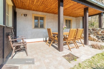 PRODÁNO - Představuji k prodeji pěknou chalupu blízko Prahy na adrese Řež ev. č. 17, s velkým pozemkem 6.863 m2. Podívejte se na samostatnou stránku: https://chalupa-rez.cz Chalupa je vzdálena jen asi 10 minut jízdy od kraje Prahy a je umístěna na klidném místě v přírodě v ohybu Vltavy na rovinaté zahradě. K chalupě patří také zalesněné údolí s protékajícím potůčkem. Celkem má pozemek výměru přes 6.000 m2, rovinatá část zahrady přibližně 800 m2. Samotná chalupa je kombinace zděné stavby a dřevostavby. V chalupě je: obývací pokoj s krbem, kuchyň s kamny a sporákem na plyn (plynová lahev je umístěna ve sklepě), podkrovní prostor na spaní, do kterého je vstup po sklápěcích schůdkách z kuchyně, další menší pokoj na spaní s úložnými prostory, zděná koupelna s wc (vana, umyvadlo, pračka), prosklená veranda a venku vedle vchodu do chalupy je otevřená veranda pod střechou. Ze severní strany jsou vstupy do dvou zděných sklepů. V menším je umístěna vodárna, která zajišťuje přívod vody do chalupy z vlastní 30m hluboké vrtané studny na pozemku. Ve druhém větším sklepě je úložný prostor a vybavená dílna s ponkem a další dva menší sklepní prostory. Chalupa je tedy podsklepená. Naproti vstupům do sklepa stojí samostatná dřevěná kolna. Okna v chalupě jsou dřevěná, stejně tak podlahy. Střecha je plechová. Elektřina je zavedena. Ohřev vody v koupelně je řešen bojlerem na tuhá paliva. Kanalizace je svedena do septiku, který je umístěný ve svahu severně od chalupy. Vzhledem k tomu, že většina pozemku je les a je zde tedy mnoho dřeva, jsou na svahu směrem do údolí vybudované několik metrů dlouhé železné kolejnice s nákladovým vozíkem, napojeným na elektromotor. Lze tak tedy snadno dopravovat dřevo z údolíčka nahoru k chatě. U "horní stanice" tohoto kolejiště je umístěn altánek. Velkou výhodou chalupy je blízkost Prahy, je tedy možné přijet třeba i jen na odpoledne a zároveň se dá v chalupě dlouhodobě přebývat, vzhledem k tomu, že je zde voda, elektřina, splachovací wc, vana... Chata se prodává kompletně zařízená, včetně zahradního nábytku, slunečníku, venkovních lehátek a zásoby dřeva. Součástí prodeje jsou i podíly na pozemcích příjezdové cesty. Chalupa není nijak právně zatížena a nevázne zde žádné břemeno či zástava. Pro koupi chalupy zajišťuji kompletní realitní a právní servis a případně financování hypotečním úvěrem. V případě více zájemců bude nemovitost prodána zájemci, který předloží nejvýhodnější nabídku. Kontaktujte mě, prosím, pro domluvení prohlídky: Jan Štěpánek TAURUM reality