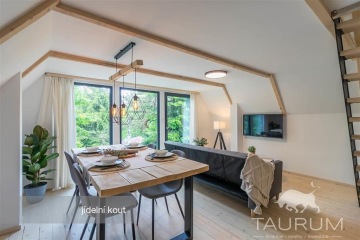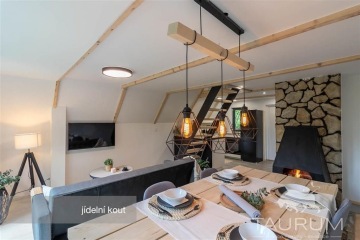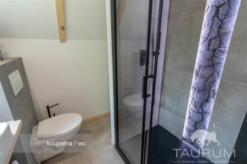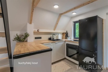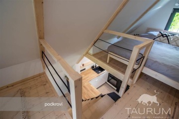 PRODÁNO - Představuji k prodeji zrekonstruovanou chatu na adrese Lišnice ev. č. 346. Podívejte se na samostatnou stránku chaty: https://chata-lisnice.cz Chata se nachází jižně od Prahy, jen cca 9km od Zbraslavi a je skvěle dostupná po D4. Vlaková zastávka je cca 1,5km, autobus cca 500m. Umístěna je v chatové osadě uprostřed lesů, pár desítek metrů od rybníka U Spáleného mlýna, ve kterém je možné koupání. Kolem chatové osady vede naučná stezka, cyklotrasy, turistické trasy. Nejenže má chata ideální dispozici (dole je velká garáž 26 m2 pod celým půdorysem chaty, nad ní je obývací pokoj s jídelním koutem, kuchyňský kout a koupelna se sprchovým koutem a splachovacím wc, plus v patře je prostor na spaní, plus pod verandou je sklípek), ale prošla i důkladnou rekonstrukcí ve velmi pěkném a citlivém designu a je vhodná pro celoroční užívání. Technické info: Chata má kamennou podezdívku, jinak je dřevěná. Střecha je krytá plechem, ošetřeným novým nátěrem odpuzujícím tepelné záření. Ve střeše a ve stěnách je izolace - 16 cm vata. Vnitřky chaty jsou sádrokartonové. Na pozemku je vrtaná studna 16 m hluboká, sloupec vody je cca 6m. Dále je zde i podzemní retenční nádrž na dešťovou vodu, která je sem svedená z okapů a kterou je možné používat na zalévání. Kanalizace je svedena do vyvážecí jímky pod chatou o objemu 8m3. Vytápění je řešeno infrafóliemi ve stropě a v podlaze pod dlažbou (v koupelně a v kuchyni) a kamny na tuhá paliva v obývacím pokoji. V patře je klimatizační jednotka. Elektřina je v mědi a je zde k dispozici jak 230 V tak i 400 V. Všechny rozvody (elektřina, voda, odpad jsou v chatě nové). Okna jsou plastová s trojskly. Komíny jsou v chatě dva, ale využívá se jen jeden a je nevyvložkovaný. Podlahy jsou dřevěné, kromě kuchyně a koupelny, kde je dlažba. Schodiště je také dřevěné, na kovové konstrukci. Celková výměra pozemku je 481 m2, z čehož je zastavěná plocha 45 m2 a zahrada 436 m2. Přístupová cesta je obecní asfaltová. Na nemovitosti nevázne žádné věcné břemeno a stavba je v katastru v pořádku zapsána. Koupi doporučuji zejména vzhledem ke klidnému místu uprostřed přírody blízko Prahy a vzhledem k tomu, že je chata po kompletní rekonstrukci. Pro prodej chaty zajistím kompletní realitní a právní servis a financování hypotečním úvěrem. Kontaktujte mě prosím pro domluvení prohlídky. Jan Štěpánek TAURUM reality