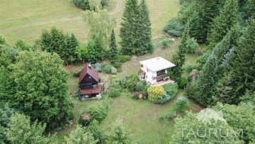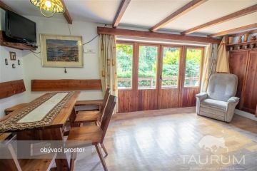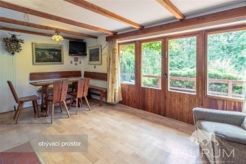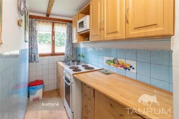PRODÁNO Představuji k prodeji hezkou chatu o zastavěné ploše 60 m2 s pozemkem o výměře 2 398 m2 v obci Mítov u Nových Mitrovic. Samostatná stránka nemovitosti: https://chata-mitov.cz Chata byla zkolaudovaná v roce 1971 a je v dobrém a udržovaném stavu. Má 2 nadzemní podlaží a je kompletně podsklepená. Její dispozice je 4+1. V 1. NP je vstupní chodba, prostorný obývací pokoj, kuchyň, ložnice, místnost s umyvadlem a s WC a terasa. Ve 2. NP jsou 2 pokoje, komora a balkon. Sklep je využívaný jako prostorná dílna, včetně umístěného soustruhu, kompresoru a cirkulární pily. Chata stojí na odizolovaných základech, obvodové zdivo je z tvárnic, omítky štukové, střecha je pultová z pozinkovaného plechu (udržovací nátěr v roce 2022) a okna jsou dřevěná dvojskla. Podlahy v 1. NP jsou betonové + linoleum. 2. NP má podlahy dřevěné. Voda je přivedena ze studny (6 m kopaná + 7 m vrt), je zde i 80l bojler. Odpad je svedený do monolitického septiku 3x1,5x+1,5m. Vytápění je zajištěno kamny a krbem na dřevo. Do chaty je zavedena elektřina 230/400 V, samotné rozvody jsou v hliníku. Chata se prodává včetně vybavení. Rozsáhlý pozemek okolo chaty je svažitý, oplocený, porostlý jehličnatými stromy a pečlivě udržovanými keři. Ve spodním rohu zahrady je skleník. Parkování je možné v dolní části před samotným vstupem na pozemek. Jedná se o velmi klidné místo pod vrchem Košín a v přímém sousedství je jen jedna chata. Autobusová zastávka je vzdálena necelý 1 km na hlavní silnici mezi Spáleným Poříčím a Novými Mitrovicemi. Pokud hledáte klidné místo pro rekreaci v krásné přírodě, které umožňuje okamžité užívání, zavolejte mi nebo napište, rád se zde s Vámi sejdu na prohlídce. Pro koupi zajistím kompletní realitní a právní servis a výhodné financování hypotečním úvěrem. Michal Kovařík TAURUM reality s.r.o.