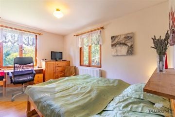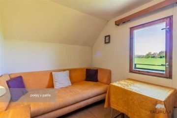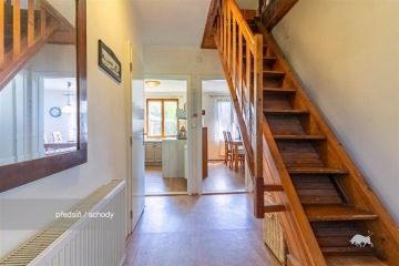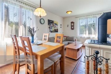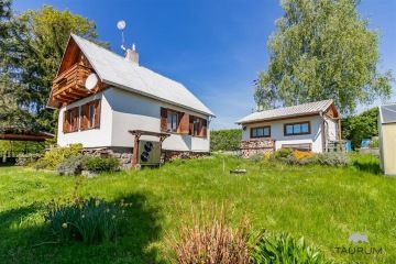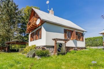 PRODÁNO - Představujeme k prodeji pěknou a skvěle technicky vybavenou chatu u vodní nádrže Slapy, konkrétně na adrese Čím ev. č. 158. Podívejte se na samostatnou stránku chaty - odkaz na stránku je ve videoprohlídce. Chata je na velmi pěkném místě, je vzdálená cca 1 km od břehu přehrady na okraji chatové osady Hrdlička. Z okraje Prahy je dostupná cca za 30 minut autem, z Dobříše jsme na chatě za 15 minut a dojet je možné až přímo na pozemek k chatě. Lokalita: Chata je situovaná na okraji chatové rekreační zástavby, jedná se tedy o velmi klidné místo. Dispozice chaty: Chata je dvoupodlažní. Ve spodním podlaží je dřevěná, prosklená veranda, přes kterou se vchází do chaty. Po vstupu do chaty se ocitneme v chodbě, ze které vedou dřevěné schody do patra, dále koupelna s WC, kuchyně, obývací pokoj a ložnice. V patře jsou dva malé pokojíčky a vstup na balkon. Chata je podsklepená, nalezneme zde krásnou velikou dílnu a technické zázemí. Na rovinaté a kompletně oplocené zahradě najdeme kromě chaty také přístřešek na dvě auta a dílnu. Technické informace: Chata je dřevěná, stojí na kamenné podezdívce a je zateplená polystyrenem. Může být vytápěna třemi způsoby. Je zde tepelné čerpadlo Acond, které funguje na principu voda - vzduch, dále jsou zde krbová kamna s rozvodem do radiátorů a akumulační kamna. Voda je čerpaná z vlastního vrtu, ale také je do chaty přivedena sezónním vodovodem, který je puštěn v sezóně od jara do podzimu. Ohřev vody zajišťuje elektrický bojler. Voda z okapů je svedena do retenční nádrže na vodu a kohoutem je pak vyváděna ven na zalévání. Odpad je svedený do vyvážecího septiku. Výměry: Zastavěná plocha chaty: 64 m2 Plocha zahrady: 684 m2 Podlahová plocha chaty: 74 m2 Plocha dílny a technického zázemí: 25,5 m2 Celková užitná plocha: 100 m2 Chata je ve skvělém stavu ji hned užívat, má zabezpečovací systém Jablotron, dveře s bezpečnostním zámkem, dostatek prostoru pro uložení věcí a možnost topení ovládat i na dálku. Je skvěle odstíněná od sousedních zahrad, takže poskytuje dostatek soukromí. V chatě je dostatek úložného prostoru ve štítech v podkroví. Chatu je vhodné využívat nejen na rekreaci, ale také na bydlení. Chatu doporučuji zejména kvůli jejímu výbornému umístění a dobrému technickému stavu. Pro koupi chaty zajistím kompletní realitní a právní servis. Kontaktujte mě, prosím, pro domluvení prohlídky: Hana Procházková TAURUM reality Uvedené výměry jsou orientační.