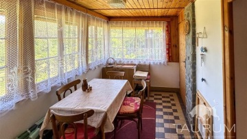 PRODÁNO - Představuji k prodeji pěknou chatu v údolí střely Střely na adrese Ondřejov ev. č. 7. Podívejte se na samostatnou stránku chaty: https://chata-ondrejov.cz Chata se nachází 27 min. jízdy severně od Plzně a cca 7 km od Plas, kde je veškerá občanská vybavenost. Dobrá je dostupnost i z Prahy (cca 1:10 z Ruzyně, dostupnost se ještě zrychlí po dokončení 2 úseků D6 v roce 2024). Zděná chata v romantickém údolí řeky, je celoročně či sezónně obyvatelná, od prvního majitele, mimo chatové osady. Relaxujte v jednom z nejméně osídleném regionu ČR, s množstvím barokních perel jako jsou Manětín, klášter Plasy a Mariánská Týnice (národní kulturní památky) či ikonický Rabštejn nad Střelou. Díky nízkému osídlení a malému světelnému smogu je chata v oblasti temné noční oblohy se skvělou možností pozorovat v noci hvězdy. Z chaty je otevřený a nerušený výhled přes údolí Střely na Podhrázský Mlýn až k Potvorovu s dominantou kostelní věže a barokní fary, během chvilky jste u řeky Střely či ve smrkovém lese s eneolitickým hradištěm nad Ondřejovskými vodopády. Chata je plně vybavena se zavedenou elektřinou, vodou z kopané studny (společná pro dvě chaty, pouze užitková voda, do budoucna doporučujeme vlastní vrtanou) má splachovací WC vodou ze studny s alternativním čerpáním dešťové vody ze sudu a samoobslužnou jímku. Nachází se v k.ú. Ondřejov přímo nad řekou, v uskupení 3 chat, na vlastním svažitém pozemku o výměře 290 m2. V přízemí chaty se nachází prosklená terasa s okny do dvou výhledových stran, a prostorná obytná místnost s kuchyňským koutem a spací galerií pro 4 osoby. Další možnost spaní až dvou osob je možné v přízemí na rozkládacím gauči. Samostatné WC je přístupné ze zasklené verandy přes malou koupelnu s umyvadlem (lze doplnit sprchu). Rozvod vody je zánovní, v plastu s vlastní vodárnou, elektřina je k dispozici jak 230 V, tak i 400 V ve sklepě/dílně. Množství dřevěných obkladů, ubírané „mlynářské“ schodiště se zdobeným zábradlím, okna, dveře, okenice atd. zhotoveno na míru otcem stavitele v truhlářské dílně, původní, dodnes perfektně držící, vnější i vnitřní obklady z místních břidlicových lomů, dodávají nemovitosti útulnou a nezaměnitelnou atmosféru. Součástí prodeje je i vybavení chaty včetně historické skříně a skleníku (stáří přes 100 let), či velmi zachovalá sedací souprava z roku 1965. Chata od prvního majitele, ve výborném stavu, s doložitelnou stavební dokumentací (již od předběžné parcelace pozemků obcí Pláně v r. 1970) a starostlivou údržbou a péčí manželského páru, původních stavitelů. To vše v lokalitě, kde se původní chaty předávají dalším generacím a nové již nestaví. Neváhejte si rezervovat prohlídku této ojedinělé příležitosti, rádi vám nemovitost ukážeme či pomůžeme s financováním. Jan Štěpánek TAURUM reality