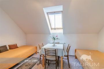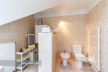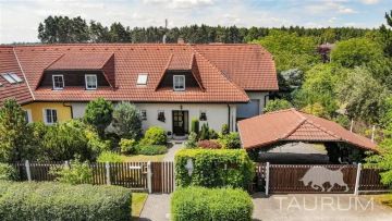 PRODÁNO - Představujeme k prodeji prostorný dům v těsné blízkosti Plzně ve velmi kvalitním provedení v obci Zruč - Senec. Podívejte se na fotografie, videoprohlídku a na samostatnou stránku domu: dum-zruc.cz Dům je vzdálen asi dva kilometry od Plzně – Bílé Hory. Cestou přes les je to asi 3 kilometry na Bolevecký rybník a samotný les je od domu doslova pár kroků, asi 130m. Dům stojí v klidně zástavbě ostatních rodinných domů. Ve Zruči je bohatá občanská vybavenost: obchod, škola, školka, zdravotnické středisko, pošta, restaurace, sportoviště… Dopravní spojení do Zruče je autobusové (MHD i meziměstské). Dům je ve velmi dobrém stavu a je členěn na 2 samostatné bytové jednotky, v přízemí 4+1+zimní zahrada s vířivkou, v patře 5+1. Před domem je předzahrádka a kryté parkovací stání. Z pravého boku domu je prostorná garáž a za domem je zahrada vhodná na klidné posezení. Technické informace: zdi - cihla 50cm + 5cm fasádní stálotvarý polystyren; izolace podlahy v přízemí - 2x Alventbit živice proti vodě a radonu + 7cm stálotvarý polystyren + lepenková distanční vrstva; izolace podkroví - 5cm stálotvarý polystyren + kročejová tvrzená izolace + lepenková distanční vrstva; střecha - difuzní fólie + 18cm skelná vata Isover + tašky Bramac + hromosvod + měděná klempířina. Voda: vodovod + kopaná 10m hluboká studna na užitkovou vodu. Topení a ohřev vody: 2 plynové kombinované kotle - pro každé podlaží jeden, v místnostech radiátory, v obou koupelnách teplovodní podlahové vytápění. Plyn zaveden, elektřina 230V i 400V, rozvody elektřiny měděné. Odpady odváděny městskou kanalizací. Okna v domě plastová. Internet od společnosti Mraknet. Satelit zapojen. Současné měsíční náklady na provoz domu: plyn - 4.500 Kč, elektřina - 1.500 Kč, voda - 1.000 Kč, internet - 300 Kč. Dům byl zkolaudovaný v roce 1998. Je ve vynikajícím stavu, vhodný pro bydlení i 2 rodin, vzhledem k oddělenému prostoru prvního a druhého podlaží. Koupi domu doporučuji zejména vzhledem k vynikajícímu stavu, bohatému prostoru, klidné lokalitě, skvělé dostupnosti do Plzně a blízkosti lesa. Stránka domu: dum-zruc.cz Pro domluvení prohlídky mi prosím zavolejte, dům vám rád ukážu. Na koupi domu zajistím výhodné financování hypotečním úvěrem. Jan Štěpánek TAURUM reality