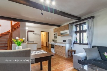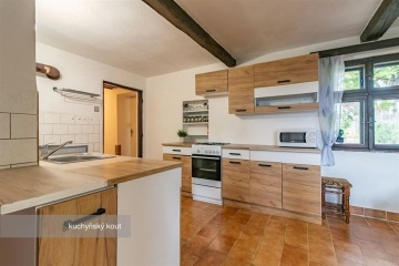 PRODÁNO - Představuji vám k prodeji moc pěkný dům po částečně rekonstrukci s velkou a udržovanou zahradou, na pěkném místě s blízkou přírodou v okolí, v obci Úboč na Domažlicku. Podívejte se na samostatnou stránku domu: https://dum-uboc.cz Základní informace: - 3+kk (+ 4 menší pokojíky v podkroví) - užitná plocha 116,6 m2 + podkroví 46 m2 - pozemek 2 220 m2 - obecní vodovod - ohřev vody - kuchyně (průtokový ohřívač), koupelna (lázeňská kamna) - elektřina 230/400V (původní hliník) - odpad - BIO septik s přepadem - plyn k dispozici na hranici pozemku (do domu není zaveden) - vytápění - každá místnost má samostatná kamna, v podkroví jsou k dispozici přímotopy Dům je velice pěkném stavu, o dispozici 3+kk. V roce 1982 se k původní chalupě přistavělo zádveří a koupelna s WC, o 13 let později se pak upravilo podkroví na 4 samostatné menší pokojíky. V letošním roce majitel dům vymaloval a pořídili novou kuchyňskou linku se sporákem, lednici, skříně, pohovku a kamna. Dům je částečně podsklepen. Jelikož se v tuto chvíli jedná o stavbu pro rodinnou rekreaci, která je užívána jen část roku, není nutné PENB předkládat, z toho důvodu uvedena třída G. K dispozici je opravdu velká rovinatá a udržovaná zahrada s místem k posezení, které by jistě bylo možné doplnit pergolou, dále pak stodola, kde uskladníte téměř vše, či využijete prostor třeba jako garáž. Územní plán - možnost využití: Ačkoliv na pozemku stojí aktuálně dům s evidenčním číslem a zastavěnou plochou 101 m2, územní plán umožňuje přestavbu či stavbu rodinného domu (na pozemku o rozloze minimálně 1000 m2) se zastavěností ≤ 25%, maximálně do 250 m2. Doplňkové stavby (garáže, kůlny, přístřešky...) možnost zastavění do 100 m2. Je zde tedy spoustu prostoru pro případnou kreativitu. Lokalita: Dům stojí v klidné jižní části obce s krásnými výhledy do okolí obklopeném lesy. Úboč se nachází asi 8 km severně od Kdyně či 15 km východně od Domažlic, kde je kompletní občanská vybavenost. Řadu služeb je možné využít také v asi 6 km severně vzdálené Kolovči. V obci je obecní úřad, je zde zřízena knihovna s připojením k internetu, denně je otevřena pošta. Do obce dojíždí linkový autobus směrem na Domažlice i Koloveč. Pokud hledáte klidné místo, kde můžete bez obav relaxovat, máte rádi prostor a venkovské prostředí na dosah okolní přírody, přesto v dobré dojezdovosti města s plnou občanskou vybavenosti, pak mi zavolejte nebo napište, domluvíme si prohlídku. Pro koupi domu Vám zajistím kompletní realitní a právní servis a v případě potřeby i výhodné financování hypotečním úvěrem.