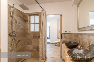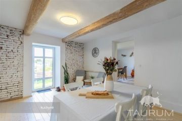PRODÁNO - Představuji vám k prodeji velmi vkusně zrekonstruovaný dům na kraji lesa, v obci Dubenec 28 v okrese Příbram. Podívejte se na samostatnou stránku domu: https://dum-dubenec.cz Dům leží na klidném místě v malé vesnici na okraji rozsáhlých lesů a je velmi dobře dostupný. Autem je to 7 minut do Příbrami a 30 minut na okraj Prahy po dálnici D4, jejíž nájezd je vzdálený 2 minuty jízdy od domu. Autobusovou dopravu zajišťují linky MHD a zastávka je 300m od domu. Nedaleko domu je nově vybudované dětské hřiště a tenisové kurty. Dům má dispozici 2+1 s tím, že ložnice má navíc prostornou šatnu se dvěma vstupy. V domě jsou: kuchyně s obývacím a jídelním koutem, 2 ložnice, velká koupelna se sprchovým koutem, 2 umyvadly, toaletou a místem na pračku, další samostatné WC s umyvadlem, zádveří a chodba. K dispozici je také stodola navazující na obytnou část, ze které je vstup na půdu. Tento půdní prostor je vhodný pro případnou další vestavbu a vytvoření dalších obytných prostorů. Dům není podsklepený. Sklep se nachází v úrovni domu, navazuje na koupelnu a je zapuštěný do svahu. Zrekonstruováno bylo v domě téměř vše: fasáda, okna (jsou nyní s trojskly), vstupní a interiérové dveře, rozvody vody, rozvody elektroinstalace, podlahy, vnitřní štuky, parapety, izolace podlah, zateplení verandy… Interiér domu byl tedy kompletně upraven a zrekonstruován a dům se prodává včetně vybavení a vyobrazeného nábytku. Dále byly vyměněny okapy a plot kolem pozemku. Zahrada a okolí domu bylo také zvelebeno a upraveno. Pozemek nad domem je svažitý, před domem je rovinatý a je kompletně oplocený. Je na něm vybudováno několik příjemných zákoutí pro posezení včetně pergoly, umístěné před domem. Technické informace: Vytápění v domě je řešeno elektrickým kotlem umístěným na toaletě. V koupelně a v chodbě jsou navíc elektrická podlahová tělesa a v kuchyni jsou kamna na dřevo. Voda je do domu zavedena z obecního vodovodu, ohřev vody zajišťuje elektrický bojler. Odpad je sveden do obecní kanalizace. Okna jsou plastová s trojskly, podlahy jsou odizolované, zčásti dřevěné (pokoje) a zčásti pokryté dlažbou (wc, koupelna, chodba, zádveří). Parkovat lze na zahradě, nebo je možné využít garáž u domu. Dům je zajímavý díky několika aspektům - je blízko u lesa, je po rekonstrukci a je výborně dopravně dostupný. Je vhodný jak na celoroční bydlení, tak i na rekreaci. Pokud hledáte příjemné bydlení do kterého není třeba už jakkoliv investovat, na kraji přírody a zároveň skvělou dostupností do Prahy, zavolejte mi nebo napište, domem vás ráda provedu. Pro koupi domu zajistím kompletní realitní a právní servis a případně financování hypotečním úvěrem. Kontaktujte mě, prosím, pro domluvení prohlídky. Hana Procházková
