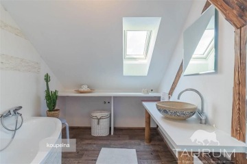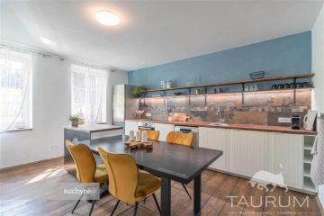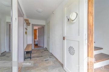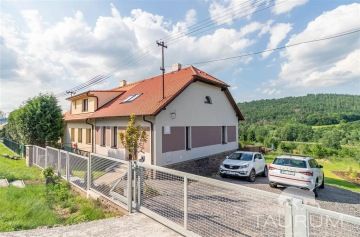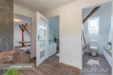 PRODÁNO - Představuji k prodeji zařízený a velmi vkusně a kompletně zrekonstruovaný rodinný dům v obci Čenkov u Příbramě. Samostatná stránka domu: dum-cenkov.cz Nově zrekonstruovaný dům se nachází na kraji obce Čenkov u městysu Jince, kde je kompletní občanská vybavenost. Co se týká vzdálenosti do Prahy, za necelých 50 minut se dostanete autem například na Anděl nebo na Budějovickou. Unikátností nabízeného domu je jeho umístění, které poskytuje nádherný výhled. Dům byl sice postaven před 100 lety, nicméně v roce 2020 a 2021 byl současnými majiteli kompletně zrekonstruován (nová střecha, okna s trojskly, kompletní zateplení, úplně nové rozvody elektřiny, vody a odpadů, nová jímka, zrekonstruované podlahy i vnitřní dveře). Dům disponuje dvěma obytnými podlažími. V 1. podlaží je kuchyně propojená s obývacím pokojem, ložnice, ze které je vstup do koupelny se sprchovým koutem a dále je zde odkládací prostor (komora) situovaný v prostoru pod schodištěm. Ve 2. podlaží je pokoj, samostatné WC, koupelna s vanou a jedna veliká místnost se vstupem do dalšího patra/ochozu, vhodného ke spaní například pro návštěvy, či jako herna pro děti. Dům je podsklepen dvěma sklepy s vysokými stropy. Vytápění domu je řešeno moderním způsobem uhlíkovými fóliemi ve stropě (Heatflow). Heatflow vytváří komfortní, zdravé teplo, které sálá rovnoměrně z celé konstrukce. Heatflow je napájená z elektrické sítě 230V, ale oproti běžným elektrickým topením je mnohem úspornější. Ve 2. podlaží jsou dvě klimatizační jednotky, které v létě vzduch příjemně ochladí a v chladných dnech lze touto klimatizací topit. I tento způsob chlazení a vytápění je energeticky velmi úsporný. V kuchyni jsou ještě k dispozici krbová kamna. Voda je do domu přivedena z obecního vrtu a odpad je sveden do vyvážecí jímky o objemu 8 m3. Ohřev vody zajišťuje elektrický bojler, umístěný ve sklepě. Pozemek má výměru 875 m2. Na pozemku je dále ohniště s posezením a květinové záhony. Jinak je zahrada porostlá trávou. Ve spodní části zahrady jsou vrátka vedoucí na louku směrem k rybníku. Brána pro vjezd automobilů je na dálkové ovládání a na pozemku za vjezdem jsou parkovací místa až pro čtyři automobily. Na zdi domu vedle parkovacích míst je přípravena elektrická nabíječka pro nabíjení elektromobilů. Koupi tohoto domu doporučuji zejména vzhledem k jeho skvělému stavu, příjemnému designu , krásnému výhledu i okolí a kromě jiného také dobré dostupnosti jak do Prahy či Plzně. Součástí prodejní ceny je i vybavení, které je vidět na fotografiích a videu s výjimkou osobních věcí majitelů. Pro koupi domu zajistím kompletní realitní a právní servis a výhodné financování hypotečním úvěrem. V případě více zájemců bude dům prodán zájemci, který předloží nejvýhodnější nabídku. Kontaktujte mě, prosím, pro domluvení prohlídky: Jan Štěpánek TAURUM reality