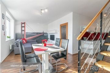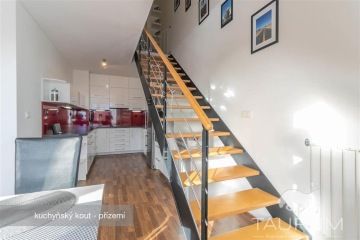 PRODÁNO - Představujeme k prodeji mezonetový byt o dispozici 3+kk s balkonem a se dvěma vyhrazenými parovacími stáními vedle domu v zástavbě zánovních obytných domů v Jinočanech u Prahy. Byt bude k dispozici k nastěhování od září 2022. Podívejte se na samostatnou stránku bytu: byt-miresicka.cz Cihlový bytový dům, ve kterém se byt nachází, je postaven v klidné lokalitě. Přímo u domu jsou 2 parkovací stání, která patří k bytu a jsou tedy součástí prodeje bytu. Byt je v 2. patře, je v osobním vlastnictví a jeho podlahová plocha je 63,4 m2. K bytu také náleží sklepní kóje o výměře 1,7 m2, která je umístěná v domě. Okna bytu jsou situována na jihovýchod. Byt je o dispozici 3+kk. Za vstupními dveřmi je předsíň, ze které vedou vchody: na samostatnou toaletu, do zděné koupelny s vanou a do obývacího pokoje s kuchyňským a jídelním koutem. V koupelně je umístěný bojler na ohřev teplé vody o objemu 160 l. Vytápění je v pokojích řešeno přímotopy. Byt je napojen na obecní vodovod a kanalizaci. Plyn zaveden do domu není. U obývacího pokoje je balkon o výměře 2,87 m2. Dále je zde jídelní kout a velký kuchyňský kout s velmi pěknou moderní kuchyňskou linkou do tvaru písmene U. V kuchyňské lince je osazena myčka, sporák, trouba, mikrovlnná trouba a digestoř s odtahem ven. Z obývacího pokoje také vedou pěkné, na zakázku vyrobené, schody z kovu a dřeva, které vedou do patra. V patře jsou další dva pokoje: dětský pokoj a ložnice. Součástí ceny prodeje jsou: kuchyňská linka včetně spotřebičů (vyjma lednice a mrazáku), nábytek v ložnici a vybavení koupelny (vyjma pračky). Ostatní nábytek bude z bytu odvezen. V bytě je jako podlahová krytina použita plovoucí podlaha v pokojích a v kuchyni a dlažba v koupelně, na toaletě a v předsíni. Okna v bytě jsou plastová. Internet je do domu zaveden optickým vláknem. Náklady na provoz bytu jsou: poplatek 2.600 Kč/m (v něm je obsažena platba do fondu oprav 850 Kč, platba za společnou elektřinu v domě, platba za popelnice a záloha na spotřebu vody) a platba za internet 490 Kč/m. Dále majitelé platí elektřinu, jejíž spotřeba je v bytě kolem 7,5MWh ročně. V blízkosti je vlaková a autobusová zastávka, zdravotnické středisko, škola, školka, pošta a supermarket. Vzdálenost na dálnici D5 je 6 km a na metro 9 km. Byt i bytový dům je ve vynikajícím stavu. Pro koupi bytu zajistím kompletní realitní a právní servis a financování hypotečním úvěrem. V případě více zájemců bude byt prodán zájemci s nejvýhodnější nabídkou. Kontaktujte mě pro domluvení prohlídky. Jan Štěpánek TAURUM reality