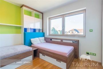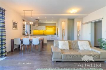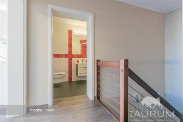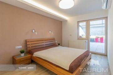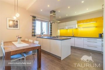 PRODÁNO - Představuji vám k prodeji krásný, prostorný a moderně zařízený mezonetový byt, se dvěmi terasami a dvěmi parkovacími stáními, o dispozici 5+KK a užitné ploše 149 m2 (+ velká terasa 51,8 m2, + malá terasa 11,1 m2), v klidné a atraktivní lokalitě Plzně Bručná (Černice). Podívejte se na samostatnou stránku bytu https://byt-safranova.cz Šafránová ulice spadá pod městskou část Slovany a místo samotné je ideální pro komfortní bydlení. Za pouhé 3 min jste autem na dálnici D5 směr Praha nebo Rozvadov, nebo v obchodním centru Olympia, i přesto nejste vůbec ničím rušení. Kolem domu vede cyklostezka, po které se můžete vydat např. do nedalekého Koterova přes řeku Úslavu nebo třeba do Losiné. Přímo před domem oceníte 2 parkovací stání a využít můžete i společnou kolárnu / kočárkárnu. Bytový dům byl postaven v roce 2010 a nachází se v něm celkem 8 bytů. Samotný byt je umístěný v 1 a 2 patře a je ve výborné stavu. Před vstupem do bytu je prostorná chodba, kde je umístěn botník a skříň, které k bytu náleží. Po vstupu se ocitneme ve spodní části bytu, kde se nachází šatna s vestavěnou skříní, koupelna s WC, bidetem a s vanou vč. zástěny pro sprchování. Dále pak dva pokoje a obývací pokoj s jídelnou a kuchyňským koutem. Z obývacího pokoje vede vstup na první menší terasu. Podlahová krytina je zde dlažba s podlahovým vytápěním, kromě zmíněných 2 pokojů, kde je dřevěná podlaha a vytápění je řešeno radiátory. Vlevo od vchodových dveří, se dřevěným schodištěm (s možností příjemné ambientního podsvícení), dostanete do horního patra, kde se nachází druhá koupelna s WC, bidetem a sprchovým koutem, dále pokoj s osazenou kuchyňskou linkou se vstupem na prostornou terasu, ložnice - opět se vstupem na terasu a velkou prostornou šatnou. Podlahová krytina je zde dlažba, v ložnici a šatně vinyl, pokoje vytápěny radiátory. Pokoj s kuchyní a ložnice jsou zároveň vybaveny klimatizací. Vytápění i ohřev vody zajišťuje plynový kotel. Velkým benefitem celého bytu je opravdu velká horní terasa směrovaná na severozápad, kterou je možné z větší části zastínit pojezdovou střešní roletou. Dalším plusem jsou také okna, která jsou dřevo-hliníková s 3 skly. Kombinace přírodního materiálu s hliníkovým opláštěním dodává oknům výjimečný vzhled a nadstandardní tepelně izolační vlastnosti. Koupi tohoto bytu doporučuji díky jeho skvělému stavu, kompletnímu vybavení, kvalitním materiálům, terase, jeho umístění a v neposlední řadě také díky skvělým sousedským vztahům. Pro koupi bytu zajistím kompletní realitní a právní servis a výhodné financování hypotečním úvěrem. V případě zájmu více zájemců bude byt prodán zájemci, který předloží nejvýhodnější nabídku. Zavolejte mi, nebo napište, domluvíme si prohlídku, byt Vám ráda ukážu. Jana Krohová, TAURUM reality