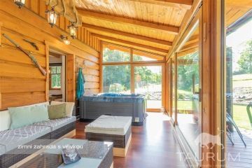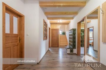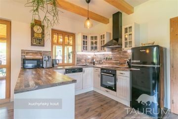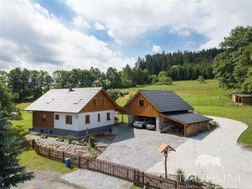 PRODÁNO - Představujeme k prodeji novostavbu rodinného domu 5+kk s opravdu velkým pozemkem a dalšími stavbami v prostředí šumavských kopců na adrese Maršovice 6, Petrovice, pár minut jízdy od města Sušice. Podívejte se na samostatnou stránku domu: dum-marsovice.cz Dům stojí na okraji klidně obce mezi loukami a lesy v kouzelné šumavské přírodě. Maršovice jsou umístěné cca na půl cesty mezi Sušicí a Velharticemi. Samotný dům je novostavba (sendvičová dřevostavba) a stojí na místě, kde dříve stál starší dům, ze kterého jsou použity pouze sklepy. Dispozice domu je 5+kk plus prosklená otevíratelná zimní zahrada s vířivkou, která navazuje na venkovní terasu. V přízemí je: velký obývací pokoj s kuchyňským koutem, ložnice se saunou a šatnou, koupelna se sprchovým koutem, toaleta, zimní zahrada, terasa a úložný prostor pod schodištěm. Po dřevěném schodišti se dostaneme do patra, ve kterém jsou 3 pokoje, technická místnost s wc a prostorem na pračku a sušičku, velká koupelna s vanou a a opět venkovní terasa podél dvou pokojů. Užitná plocha domu je 239 m2. Do domu je přivedena elektřina, k dispozici je 230 i 400 V, veškeré elektrorozvody jsou měděné. Voda je čerpána z vlastního, 80 m hlubokého vrtu, který je přímo na pozemku vedle domu. Ohřev vody je zajištěn bojlerem o objemu 160l. Odpady jsou zpracovávány čističkou odpadních vod. V domě je několik zdrojů tepla: podlahové elektrické vytápění, kachlová kamna v obývacím pokoji a na chodbě, přímotopy v pokojích, vytápěcí žebřík na ručníky ve spodní koupelně. Celý dům je zateplen foukanou izolací, ve stropě je vata. Okna jsou plastová, schodiště dřevěné, podlahy kvalitní plovoucí lamino podlaha, pod kterou je 12cm polysytyrenová izolace a beton. Na střeše jsou pálené tašky, komín je vyvložkovaný. Dům je vybaven kamerovým systémem s alarmem. Dům byl postaven před 3 lety, zkolaudován byl v roce 2019 a prodává se včetně většiny zařízení a vybavení (vyjma: dopravních prostředků, osobních věcí, nářadí, sekaček, vybavení dílen, venkovního nábytku, osobních věcí, hodin...). Energetická třída domu je C. Celkové náklady na provoz domu jsou cca 20.000 Kč / rok. K domu náleží také další technická stavba, ve které je přístřešek na auta a garáží s dílnou. Na pozemku dále stojí montované stavby - sklady. Pozemek má výměru celkem 8.510 m2. Je celý oplocený. Na části pozemku, kde stojí dům a ostatní stavby jsou jak vybudované komunikace tak i krásně udržovaná zahrada. Nad zahradou je velká obora se stádečkem daňků. Pro prodej domu zajišťuji kompletní realitní a právní servis, včetně zajištění financování hypotečním úvěrem. Kontaktujte mě, prosím, pro domluvení prohlídky: Jan Štěpánek TAURUM reality