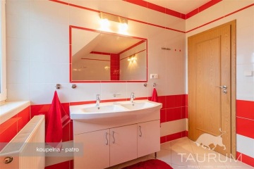 PRODÁNO - Představujeme k prodeji pěkný rodinný cihlový dům o dispozici 5+1 s dvojgaráží ve Zdicích u Berouna. Podívejte se na samostatnou stránku domu: dum-zdice.cz Dům stojí v klidné části obce, pár desítek metrů od okraje CHKO Křivoklátsko. Autobusová zastávka je vzdálena 300m a i autem je vynikající dopravní dostupnost: na dálnici D5 je to 5 minut jízdy, na okraj Prahy 20 minut a do Plzně cca 30 minut. Dispozice domu je 5+1. V přízemí je dvojgaráž s vraty na dálkové ovládání, ze které se dá projít do obytných místností. Dále je v přízemí místnost na kotel, odkladiště na topivo, chodba, koupelna s wc a sprchovým koutem, obývací pokoj s krbem, kuchyň. Po dřevěných dubových schodech se dostaneme do patra, kde jsou 4 pokoje se samostatnými vchody, velká koupelna s vanou a s wc, druhá oddělená chodba a menší místnost zařízená jako šatna. Z chodby v patře je vstup do půdního prostoru. Dům je postavený v roce 2014, z cihel (Porotherm 40) a zateplený 8cm šedým polystyrenem. Střecha je pokrytá betonovými taškami Bramac a je zateplena vatou 24 cm. Okna jsou plastová s trojskly. Vytápění zajišťuje jak kotel na tuhá paliva, tak i nový elektrokotel. V domě jsou jako topná tělesa použité radiátory, plus navíc v kuchyni a v části obývacího pokoje v prostoru u francouzského okna je teplovodní podlahové vytápění. Krb v obývací pokoji je napojen na vyvložkovaný komín značky Schiedel. Podlahy jsou betonové a jako krytina jsou v části domu dlaždice a v části laminátová plovoucí podlaha. Dům je osazen kamerovým systémem. Za zmínku stojí nízké náklady na provoz domu, které jsou v součtu do 4.000 Kč měsíčně. Dům je napojen na obecní vodovod a dále je na pozemku vrtaná studna, 28 m hluboká, s užitkovou vodou. Odpady jsou svedeny do jímky o objemu 8 m3. Obecní kanalizace je plánována cca do dvou let. Vzhledem k tomu, že dům je zánovní, jsou elektrické rozvody měděné a k dispozici je jak 230V tak i 400V. Plynová přípojka není k dispozici. Zahrada kolem domu je velmi pěkná s řadou květin, ovocných a okrasných keřů a je koncipována tak, aby byla téměř bezúdržbová. Na pozemku jsou 2 zóny se sezením a slunečníky a dále ohniště a zděný zahradní domek. Na pozemku je také připraven rozvod na zavlažování, je potřeba jen dodělat připojení. Vjezd na pozemek je zajištěn vraty s elektrickým pohonem na dálkové ovládání. 2 vozidla se vejdou do garáže a na další přibližně 4 vozidla je prostor před domem. Dům je ve skvělém stavu, prodává se částečně zařízený (v ceně je kuchyňská linka a vestavěné skříně) a je v něm okamžitě možné bez jakýchkoli úprav možné bydlet. Doporučuji prohlídku tohoto domu vzhledem k jeho skvělému umístění s výbornou dopravní dostupností, blízkosti Křivoklátských lesů, pěkné zahradě a perfektnímu stavu. Pro koupi domu zajišťuji realitní a právní servis a financování hypotečním úvěrem. Kontaktujte mě prosím pro domluvení prohlídky: Jan Štěpánek TAURUM reality