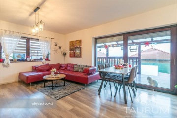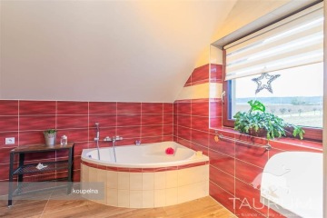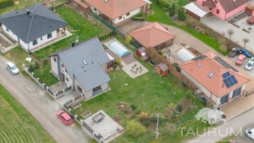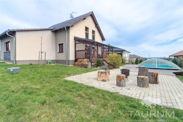 PRODÁNO - Představujeme prodej novostavby rodinného domu v malebné obci Rochlov, nacházející se 20 km od Plzně a 6 km od Nýřan. Samostatná stránka domu: dum-rochlov.cz Dům z roku 2016 se pyšní dispozicí 5+kk, technickou místností, komorou a garáží. Dále disponuje zastřešenou terasou a bazénem. Celková plocha pozemku je 1000 m2. V přízemí domu se nachází prostor zádveří, dále chodba a z ní vedoucí vchod do pracovny, technické místnosti průchozí až do garáže, na WC a do obývacího pokoje s kuchyňským koutem a s komorou. Z obývacího pokoje vede přímý vstup na zastřešenou prkennou terasu, ze které je výhled na zahradu a bazén. Z chodby vede schodiště do patra, kde naleznete koupelnu s rohovou vanou, sprchovým koutem a toaletou a tři samostatné pokoje. Dům je postavený z cihel značky Heluz. Okna v celém domě jsou plastová trojskla, v obývacím pokoji navíc vybavena předokenními žaluziemi. Objekt je zastřešen sedlovou střechou a krytinou z pálených tašek. Přívod vody je zajištěn z vlastní vrtané, 66 m hluboké studny. Kanalizační odvod je řešen vlastní ČOV. Dům je vytápěn stropním sálavým topením prostřednictvím tepelného čerpadla. V obývacím pokoji jsou navíc krbová kamna na dřevo, které zajistí hezkou atmosféru nejen v zimě. Garáž je vytápěna skrze podlahové topení. Pokud hledáte bydlení v téměř novém domě na pěkném místě mimo velké město, ale zároveń se skvělou dopravní dostupností (na dálnici D5 je to coby kamenem dohodil), doporučuji se přijet na dům podívat. Kromě klidného prostředí zde v krátké docházkové vzdálenosti najdete i mateřskou školku, potraviny či hostinec. Příjemnou procházkou můžete dojít k tamnímu zámku, známému pro své bylinkové panství a pořádání svatebních dnů. Veškerou občanskou vybavenost najdete pak v nedalekých Nýřanech. Pro prodej zajišťuji kompletní realitní a právní servis a případně financování hypotečním úvěrem. V případě více zájemců bude dům prodán zájemci s nejvýhodnější nabídkou. Kontaktujte mě, prosím, pro domluvení prohlídky: Hana Procházková TAURUM reality