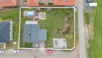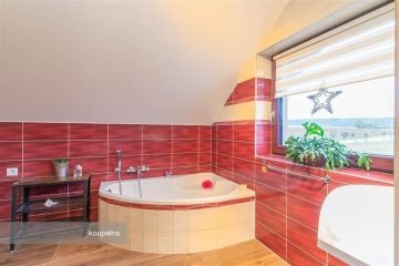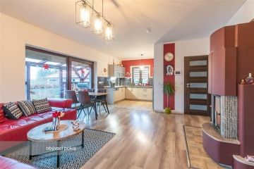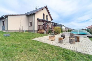 PRODÁNO - Představujeme prodej novostavby rodinného domu v malebné obci Rochlov, nacházející se 20 km od Plzně a 6 km od Nýřan. Dům z roku 2016 se pyšní dispozicí 5+kk, technickou místností, komorou a garáží. Dále disponuje zastřešenou terasou a bazénem. Celková plocha pozemku je 1000 m2. V přízemí domu se nachází prostor zádveří, dále chodba a z ní vedoucí vchod do pracovny, technické místnosti průchozí až do garáže, na WC a do obývacího pokoje s kuchyňským koutem a s komorou. Z obývacího pokoje vede přímý vstup na zastřešenou prkennou terasu, ze které je výhled na zahradu a bazén. Z chodby vede schodiště do patra, kde naleznete koupelnu s rohovou vanou, sprchovým koutem a toaletou a tři samostatné pokoje. Dům je postavený z cihel značky Heluz. Okna v celém domě jsou plastová trojskla, v obývacím pokoji navíc vybavena předokenními žaluziemi. Objekt je zastřešen sedlovou střechou a krytinou z pálených tašek. Přívod vody je zajištěn z vlastní vrtané, 66 m hluboké studny. Kanalizační odvod je řešen vlastní ČOV. Dům je vytápěn stropním sálavým topením prostřednictvím tepelného čerpadla. V obývacím pokoji jsou navíc krbová kamna na dřevo, které zajistí hezkou atmosféru nejen v zimě. Garáž je vytápěna skrze podlahové topení. Pokud hledáte bydlení v téměř novém domě na pěkném místě mimo velké město, ale zároveń se skvělou dopravní dostupností (na dálnici D5 je to coby kamenem dohodil), doporučuji se přijet na dům podívat. Kromě klidného prostředí zde v krátké docházkové vzdálenosti najdete i mateřskou školku, potraviny či hostinec. Příjemnou procházkou můžete dojít k tamnímu zámku, známému pro své bylinkové panství a pořádání svatebních dnů. Veškerou občanskou vybavenost najdete pak v nedalekých Nýřanech. Pro prodej zajišťuji kompletní realitní a právní servis a případně financování hypotečním úvěrem. V případě více zájemců bude dům prodán zájemci s nejvýhodnější nabídkou. Kontaktujte mě, prosím, pro domluvení prohlídky: Hana Procházková TAURUM reality