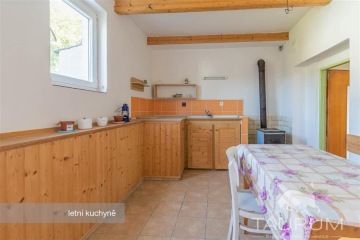PRODÁNO - Představuji k prodeji částečně zrekonstruovaný dům s nebytovými prostory v Litohlavech. Podívejte se na samostatnou stránku domu: dum-litohlavy.cz Dům stojí v klidné části obce Litohlavy směrem na Smědčice, 2 minuty jízdy od dálnice D5 a 7 minut jízdy od okraje Plzně. Disponuje 4 obytnými pokoji, kuchyní a řadou dalších místností. V přízemí je kromě kuchyně a 2 pokojů (v obývacím pokoji je krb s výbuchy teplého vzduchu do obývacího pokoje a do kuchyně) dále wc, velká koupelna s vanou, sušárna se vstupem do podzemního sklepa, dílna, prostorný sklad a v zadní části domu je další místnost, která je zařízená jako letní kuchyně a společenská místnost pro zahradu. Nahoře v patře jsou další 2 obytné pokoje, komora s přípravou na připojení pračky, samostatné wc, menší koupelna se sprchovým koutem a dále vstup do půdního prostoru, kde lze vybudovat vestavbu a kde je již nyní umístěn jeden menší pokoj, vhodný například jako herna pro děti nebo pro přespání návštěvy. Vjezd do dvora zajišťují velká vrata. Na dvůr se vejdou pohodlně minimálně 2 osobní vozidla. Ze dvora je vjezd do prostorné vysoké haly, která může sloužit jako sklad. Za domem je klidná zahrada, která poskytuje soukromí. Vstup na tuto zahradu je ze skladu, z letní kuchyně i vně kolem domu z předního dvora. Na zahradě je hluboký zděný zapuštěný bazén, který vyžaduje rekonstrukci, dále zahradní betonový krb a 7m hluboká kopaná studna. Technické informace: Do domu je zavedena elektřina 230 i 400V, obecní vodovod a plynová přípojka. Dále je možné čerpat vodu i ze studny (vodovodní přívod ze studny do domu je vybudovaný). Dům je napojen na dešťovou kanalizaci. Odpady z domu jsou svedeny do septiku 7m3 s přepadem do dešťové kanalizace, který je umístěný na dvoře (vývoz cca 1x ročně). Vytápění a ohřev vody jsou řešeny plynovým kotlem, který je nedávno repasovaný. V celém domě jsou radiátory se zánovními rozvody. Dům je částečně rekonstruovaný. Byla vyměněna střešní krytina (betonové tašky) a latě, komín je vyvložkovaný, okna plastová, je hotová nová fasáda. Elektřina je v mědi, rozvody vody jsou také měněné. Podlahy a stropy jsou betonové (v patře jsou stropy sádrokoartonové). Střecha je zateplena vatou cca 15cm. Dům je odspodu izolován IPOu. Jsou měňené rozvody vody, elektřiny i kanalizace. V domě jsou nové schody do patra (dřevěné s kovovou konstrukcí). Je potřeba dodělat následující: zrekonstruovat bazén, položit izolaci nad stropem horní koupelny, opravit vyústění okapu na zadní straně domu. Kromě dobrého stavu domu a jeho umístění blízko Plzně jsou velkou výhodou i nebytové prostory - vytápěná dílna a velký sklad, které lze využít pro podnikání. Ve skladu je pod střechou kolejnice s elektronavijákem a kladkou, která vede až do půdního prostoru domu a tento mechanismus lze využít i pro stěhování do patra. Pro koupi domu zajišťuji kompletní realitní a právní servis a financování hypotečním úvěrem. Kontaktujte mě, prosím, pro domluvení prohlídky. Jan Štěpánek TAURUM reality