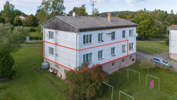 Představujeme k prodeji hezký byt 4+1 o výměře 94 m2 + sklepy, který je umístěný ve zvýšeném přízemí cihlového domu na adrese Nové Mitrovice 124, 30 km od Plzně. Podívejte se na samostatnou stránku bytu: https://byt-novemitrovice.cz Prohlédněte si i virtuální 3D prohlídku bytu, která umožní kompletní a detailní pohled na celý byt. Okolí domu: Dům se nachází v jižní části Brd, tedy na hezkém místě, obklopeném přírodou. Parkovat lze bez problému u domu na vyhrazeném místě. Okolo domu je veliké množství zeleně a dětské hřiště. Pozemek okolo domu je obecní, celoročně udržovaný. V obci je základní občanská vybavenost (potraviny, hřiště, knihovna, pošta, autobusová zastávka). Informace k bytu: Byt má dispozici 4 + 1. Před pár lety byl z veliké části rekonstruovaný (nová kuchyňská linka, koupelna, toaleta, elektroinstalace, nové štuky, podhledy a izolace). Okna v bytě jsou plastová, orientovaná do klidu na východ, jih i západ. Byt disponuje prostornou koupelnou s vanou a dvěma samostatnými toaletami. Dále zde najdeme dvě chodby a celkem 5 místností (ložnici, obývací pokoj, dětský pokoj a jídelnu s kuchyní). K bytu patří dvě sklepní kóje, umístěné v přízemí domu a prodává se částečně vybavený (viz foto bytu). Technické informace: Voda i kanalizace jsou do domu přivedeny dálkově. Ohřev zajišťuje elektrický bojler a vytápěn je společným plynovým kotlem. Internet je do bytu zavedený od společnosti InternetHned Spálené Poříčí. Jako podlahové krytiny jsou v bytě použity plovoucí podlahy a dlažba. Nové Mitrovice jsou od Plzně vzdálené 30 km jihovýchodně. V okolních lesích jsou dobré cesty pro cykloturistiku, v zimě při dostatečné sněhové nadílce i na běžky. Značené turistické trasy Klubu českých turistů se po zrušení vojenského prostoru Brdy prodloužily i o nové trasy – Padrťské rybníky, Záběhlá, zámeček Tři trubky, a další. V měsíci září se lesy stávají vyhlášeným houbařským revírem. V obci jsou i menší ubytovací kapacity (penziony Pohoda a Stodůlka). Pokud hledáte pěkný a velký byt na klidném místě, v přírodě, zavolejte mi nebo napište, ráda Vám jej ukážu. Pro koupi bytu zajistíme kompletní realitní a právní servis a financování hypotečním úvěrem. Kontaktujte mě, prosím, pro domluvení prohlídky: Bc. Hana Procházková TAURUM reality s.r.o.