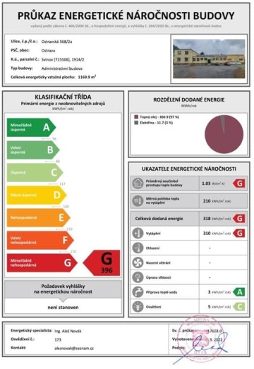 Představuji k prodeji areál s pozemkem 29.284 m2 vhodný dle územního plánu na lehkou průmyslovou výrobu, logistiku, sklady, servis... apod... vše se střední a malou emisní vydatností, který je umístěný v Ostravě Svinově na adrese Ostravská 568/2a. Areál se nachází na okraji města, 1,5 km od dálnice D1 a 2km od nádraží Ostrava Svinov. Přístup do areálu je po asfaltové komunikaci ve vlastnictví kraje. Areál je oplocený a je napojený na tyto inženýrské sítě: obecní vodovod obecní dešťová kanalizace (průměr 150 mm) s vyústěním mimo areál 2x podzemní linka vysokého napětí (2 x 250kVA, hlavní jistič 360A) optické vlákno od O2 V areálu je kanalizační jímka o objemu 25 m3. Uprostřed pozemku stojí zděná cihlová podsklepená budova. Původní objekt byl postaven v třicátých letech minulého století, rekonstrukce byla provedena v roce 1977. V roce 1995 bylo provedeno zateplení části obvodového zdiva. Objekt je částečně podsklepený a jeho větší část má jedno nadzemní podlaží, jihozápadní ubytovací část objektu má dvě nadzemní a jedno podzemní podlaží. Obvodové zdivo jihozápadní části (dvě NP) je vyzděno z plných cihel v tl. 450 mm a je zatepleno fasádním zateplovacím systémem s tepelnou izolací z čedičové plsti o tl. 50 mm. Nižší jihovýchodní část objektu je vyzděna z cihel CDm v tl. 250 mm a zdivo je obloženo rovněž systémem. Střední část objektu s vysílacím sálem je ŽB skelet, vyzdívky jsou provedeny částečně z cihel CDm v tl. 250 mm a částečně z cihel plných v tl. 450 mm. Zdrojem tepla je kotelna na LTO, Kotelna je osazena celkem 2 ks shodných kotlů ACV typu ACV N3 na ELTO o výkonu 2 x (4258) kW s hořáky ACV BMR51. Pro ohřev TUV je instalován v suterénu ohřívač o objemu 400 l s elektrickou topnou spirálou 6000 W. Pro osvětlení objektu jsou použita převážně zářivková svítidla. Vytápění a ohřev vody je v budově řešen dvěma kotli na ELTO (extra lehké topné oleje). Vysílač, který stojí na pozemku, majitel odstraní. Mezi fotografiemi naleznete náčrtek možné výstavby haly s parkovacími místy. Územní plán, ani místní regulativ neomezuje jak procentuální zastavitelnost pozemku, tak ani výšku výstavby. Lze tedy předpokládat, že nová stavba by mohla být alespoň tak vysoká, jako současná budova, tedy cca 8 m. Na výše zmíněné stránce je možné stáhnout i upřesňující regulativ z územního plánu. Cena je uvedena bez DPH 21% a včetně odměny za zprostředkování prodeje. Pro prodej tohoto areálu zajišťuji kompletní realitní servis. Kontaktujte mě prosím pro další informace a případně prohlídku areálu. Jan Štěpánek TAURUM reality Uvedené výměry jsou orientační.