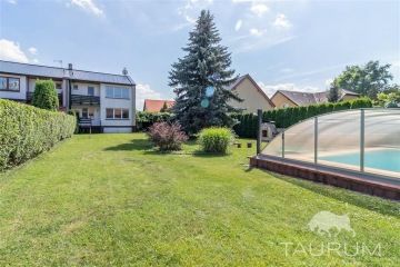 Představuji k prodeji 3. patrový řadový dům o dispozici 5 + 1 a podlahové ploše 135 m2 a výměře pozemku 887 m2 na adrese U Parku 171, Holubice. Podívejte se na samostatnou stránku domu: https://dum-holubice.cz Obec Holubice je velmi dobře dopravně dostupná. Autem je to 15 minut na okraj Prahy, pouhých 5 min do Kralup nad Vltavou, kde je veškerá občanská vybavenost. Zároveň je nedaleko domu autobusová zastávka. Dům je podsklepený, samotná stavba je smíšená – cihla / dřevostavba. V suterénu, který je částečně pod úrovní terénu, je garáž, dílna, kotelna s kotlem na tuhá paliva a elektrokotlem a další skladovací a úložné místnosti. V přízemí domu je koupelna s toaletou, ložnice, obývací pokoj, kuchyň s přímým vstupem na zahradu a schodiště vedoucí dolů do technického suterénu. V patře jdou pak další 3 pokoje, samostatné wc, koupelna, komora a vstupní otvor na půdu. krásnou, velkou, rovinatou a udržovanou zahradu, kde je možné posezení jak pod pergolou s krbem, tak na lavičce pod vzrostlým jehličnanem. Najdete tam též plně funkční bazén a zahradní domek, který je rozdělen na obytnou a užitnou část. V patře jsou tři samostatné pokoje, samostatné WC s koupelnou a malá šatna. Nachází se tam též vlez na půdu ze žebříku, která může být využívána jako úložiště věcí. V domě byla zrealizována částečná rekonstrukce: bylo děláno zateplení domu, nová okna s roletami, podlahy, topení a před 4 lety byla položena nová plechová střecha. Technické informace: Vytápění je zajištěno kotlem na tuhá paliva, případně elektrokotlem, dále rozvedeno a napojeno na topná tělesa – radiátory. Voda je do domu zavedena z obecního vodovodu, ohřev vody zajišťuje bojler a taktéž je možné vodu ohřívat pomocí kotle na tuhá paliva. Elektrické rozvody jsou v mědi 230/ 400 V. Odpad je řešen svodem do kanalizace. Podlaha je v přízemí betonová. Jako podlahové krytiny jsou použity: dlažba a plovoucí podlaha. Schodiště do patra je dřevěné. Okna jsou plastová, střecha plechová, koupelnové jádro je zděné. PENB je třída G. Dům má celkem tři lodžie – jednu do ulice a dvě do zahrady. Dům se prodává kompletně zařízený vč. všeho nábytku zobrazeného na fotkách. Součástí budovy je též kotelna, prádelna a garáž o 1 parkovacím stání, další možnost stání je před domem pro 3-4 vozidla. Na pozemku se též nachází plechový přístřešek na skladování zahradního vybavení. Na zahradě je zahradní domek, pergola a bazén. Dům je zajímavý díky několika aspektům – je krajní z řadové zástavby, dobře situován, po částečné rekonstrukci a plně vybaven, navíc s pěknou udržovanou zahradou a je dobře dopravně dostupný. Pro koupi domu zajistím kompletní realitní a právní servis a případně financování hypotečním úvěrem. V případě více zájemců bude dům prodán zájemci, který předloží nejvýhodnější nabídku. Kontaktujte mě, prosím, pro domluvení prohlídky. Jan Štěpánek TAURUM reality