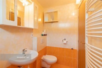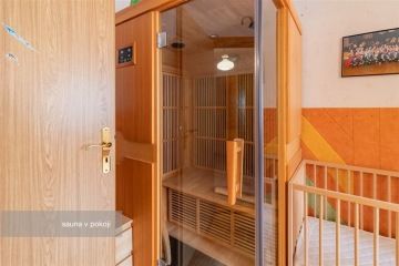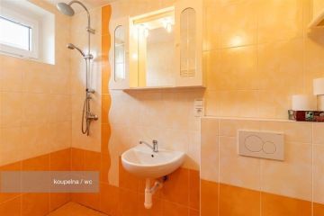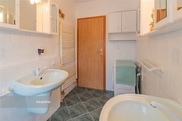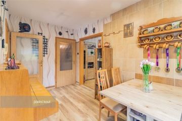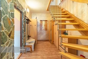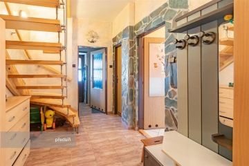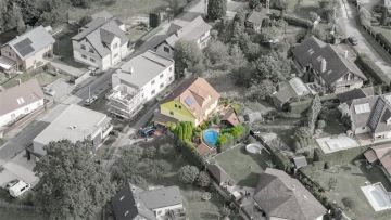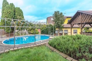 Představuji vám k prodeji moc pěkný rodinný dům se zahradou a celou řadou příslušenství v Liberci, v jeho klidné části obklopené bydlením v rodinných domech ve Vesci. Ucelenou prezentaci domu můžete shlédnout na odkaze, který je součástí video prohlídky. Základní informace: > 4+1 (+ podkroví připravené pro vestavbu) > užitná plocha 203 m2 (1NP 35m2, 2NP 98 m2, podkroví 70,2 m2) uvedené výměry jsou orientační > pozemek 512 m2 > kombinace pálené cihly a dřevostavby > střecha KM Beta > krovy odpovídající 4. sněhové oblasti > technický suterén s garáží, kuchyní a sociálním zařízením > okna dřevěná eurookna, vakuovaná s 2 skly (v technickém suterénu jsou okna plastová Vekra s 2 skly z roku 2014) > elektřina 230/400 V (3x25, měď) > zastřešená pergola > zahradní domek > zapuštěný bazén > obecní vodovod a kanalizace > ohřev vody, topení plynový kondenzační kotel + zásobník 300 l + solární panely (samostatné topné okruhy), krbová kamna > elektřina 230/400V (měď) Dům byl zkolaudovaný v roce 2000 a je ve velice pěkném stavu. Spodní část domu je postavena z pálených cihel a zateplena, u 2NP s podkrovím se jedná o zateplenou dřevostavbu. Střecha má dřevěný krov, krytinou je betonová taška KM Beta a je částečně zateplena. Hlavním vchodem se dostanete do 1NP, kde najdete tzv. technický suterén, kde je k dispozici prostorná garáž s komorou, malá koupelna se sprchovým koutem, umyvadlem a WC, kuchyně se spižírnou a prostorná předsíň. Odsud se po dřevěném jasanovém schodišti dostanete do 2NP, kde je hlavní obývací prostor. Zde se po levé straně nachází prostorná koupelna s vanou, dvěma umyvadly a bidetem, dále pak ložnice a další dva pokoje. Po pravé straně je pak spojovací místnost mezi obývacím pokojem a kuchyní, s jídelním koutem a s dalším vstupem do chodbičky, kde je k dispozici úklidová komora, samostatné WC a pak vstup na balkon lemující dům a další a poslední vstup do podkroví. Z obývacího pokoje směrovaného na příjemnou jižní stranu, je možné přes francouzské okno vstoupit do krásné zahrady, plné květů a zeleně. Součástí zahrady je krytá pergola s posezením, zapuštěný bazén s pískovou filtrací a solárním ohřevem. V zahradním domku pak schováte vše potřebné nářadí a náčiní. Sítě: Dům je napojen na obecní vodovod a kanalizace. Ohřev vody a topení zajišťuje plynový kondenzační kotel + zásobník a navíc solární panely. Topení má samostatné topné okruhy a navíc je možné na přitopení v chladnějších jarních či podzimních měsících využít krbová kamna. Lokalita: Vesec, kde se rodinný dům nachází, leží na jižním okraji města. Dům se nachází v zástavbě dalších rodinných domů, v klidné části města. Pokud hledáte klidné místo, kde můžete bez obav bydlet a relaxovat, zároveň v dosahu všeho potřebného a kompletní občanské vybavenosti, pak mi zavolejte nebo napište, domluvíme si prohlídku. Pro koupi domu Vám zajistím kompletní realitní a právní servis a v případě potřeby i výhodné financování hypotečním úvěrem. Uvedené výměry jsou orientační.