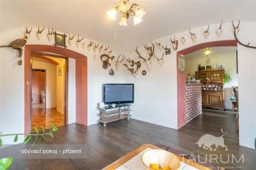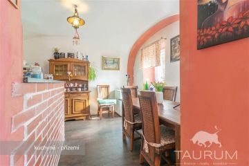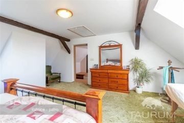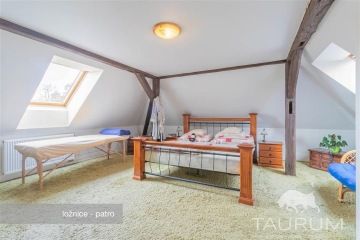 Představuji k prodeji 2 podlažní dům 5+1 v obci Tloskov u Neveklova, který prošel částečnou rekonstrukcí, 35 min od Prahy, 10 min od vodní nádrže Slapy, 13 min od Benešova. U tohoto domu je možné převzít hypotéku cca 1,7mil. s úrokovou sazbou 2,79% a fixací úrokové sazby do 11/2029. Podívejte se na samostatnou stránku domu: https://dum-tloskov.cz Samotná stavba domu je ze smíšeného zdiva: spodní část patra tvoří kamenné zdivo, horní patro je postaveno z tvárnic. V přízemí je po vstupu za verandou chodba, vstup do koupelny a do prostorného obývacího pokoje, jímž dále vejdete do kuchyně a spíže. Z chodby můžete vejít též do 2 pokojů (jeden je využívaný jako pracovna, druhý jako technická místnost), kotelny a skladu. Po dřevěném schodišti vystoupáte do prostor horního patra, kde najdete skutečně prostorově komfortní ložnici, šatnu a 2 pokoje. Příjemný charakter horního patra podtrhuje přiznaná masivní dřevěná konstrukce krovu. Stropy jsou v horním patře dřevěné, ve spodním patře je strop tvořen klenbou. Podlaha byla kompletně vykopaná a nově udělaná, odizolovaná proti vlhkosti a zateplená 7 cm izolací. Podlahová krytina je řešená pevnou a stálou litou anhydritová směsí. Vytápění je řešeno kotlem na tuhá paliva a kamny na tuhá paliva. Jako topné prvky jsou použity: teplovodní podlahové vytápění v přízemí, elektrické podlahové vytápění v koupelně a radiátory v technické místnosti dole a v pokojích v patře. Ohřev vody je řešen boilerem a je k ohřevu vody možné použít kamna. Všechna okna v domě plastová. Dům se prodává s kompletně zařízenou kuchyňskou linkou vč. myčky. Rekonstrukce zastřešení se prováděla v roce 2005 zároveň s opravou krovu. Kvalitní izolaci střechy nyní zajišťuje vata v šíři 30 cm. V domě jsou též nové rozvody elektřiny v mědi 230/400 V a nové vodní a odpadní rozvody. Voda je zajištěna z vodovodního řadu, odvod odpadu je do kanalizační přípojky. Za domem je pozemek mírně svažitý, zbytek pozemku tvoří převážně rovinatá plocha. Dům je tak příjemně vsazen do krajiny. Celková výměra pozemku je: 919 m2. Pro finalizaci rekonstrukce bude třeba opravit strop na verandě, stropy v zadních technických místnostech a fasádu vně objektu. Dům doporučuji pro jeho polohu, která je zároveň v dobré dopravní dostupnosti od Prahy. V letních měsíce oceníte krátkou dojezdovou vzdálenost k přehradě Slapy. Energetický štítek je v přípravě, proto uvádíme třídu G. Pro prodej domu zajišťuji kompletní realitní a právní servis a financování hypotečním úvěrem. V případě více zájemců bude dům prodán zájemci, který předloží nejvýhodnější nabídku. Kontaktujte mě, prosím, pro domluvení prohlídky: Jan Štěpánek TAURUM reality
