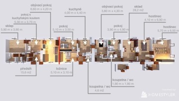 Představujeme k prodeji rodinný dům se dvěma oddělenými bytovými jednotkami, garáží a bohatým zázemím v Chocenicích, v okrese Plzeňjih. Podívejte se na samostatnou stránku domu zmíněnou ve videu. Informace o domě: První písemné zmínky o domě se datují od roku 1703, kdy byl pravděpodobně dům postaven a byl využíván jak pro bydlení, tak pro provozování hospodářství. Později byly přistavovány další prostory stodola s podkrovím, maštal a garáž. V pozdějších letech zde navíc provozovala jednota tzv. zájezdní hostinec s kuchyní a se sálem, který zde roky fungoval. Dům je rozčleněn na tři části. Je přístupný velkými bočními vraty přímo z návse obce. Jimi se dostaneme do průjezdu uzavřeného prostoru, kde se v pravé přední části vchází do bývalého hostince, uprostřed je vstup do obytné části jedné udržované, částečně zrekonstruované a trvale obývané bytové jednotky o dispozici 4+1 a v zadní části je vchod do druhého, původního bytu o dispozici 1+1. Kromě bytu je zde také sklep, kotelna a koupelna. V levé části je uhelna, bývalý sklep s lednicí dříve sloužící jako zázemí pro hostinec, stodola a bývalé stáje, na které navazuje prostorná garáž. Nad obytnou částí, hostincem, průjezdem i stájemi se nachází rozsáhlé půdní prostory, nabízející další možnosti rozšíření obytného prostoru. K domu patří krásně udržovaná zahrada s posezením a další dva pozemky, vzdálené pár kroků od domu. Výměry: Obytná plocha (2 byty): 207,7 m2 Užitná plocha (byty + hostinec): 280 m2 Garáž: 22,1 m2 Plocha stodol (maštal, sklep): 193 m2 Celková plocha všech půdních prostor: 545,3 m2 Zastavěná plocha domu: 877 m2 Plocha zahrady: 1.383 m2 Celková plocha parcel: 2.260 m2 Inženýrské sítě: Voda vlastní kopaná, 30 metrů hluboká studna (v obci je vodovod a přípojka je za vraty, je tedy možné se napojit) Kanalizace momentálně je využíván septik (splašková kanalizace zatím v obci není, momentálně je v řešení a řeší se projektová dokumentace pro územní řízení a stavební povolení) Ohřev vody zajištěn elektrickými bojlery Vytápění kombinace akumulační kamna, podlahové vytápění Plyn zaveden Stav domu: Dům je neustále udržovaný a trvale se v něm žije. Okna směřující do silnice jsou vyměněná za plastová, elektrické rozvody jsou v hliníku, komíny jsou vyzděné. Do domu je zavedená pevná linka od O2. Parkovat lze bez problému na návsi u domu či v průjezdu domu. PENB uvádíme třídu G a nyní je momentálně v přípravě. Hledáte li místo k Vašemu bydlení, nebo podnikání nebo ke kombinaci obojího a nevadí Vám umístění u silnice, byť díky uzavřenému prostoru v absolutním soukromí, může být tento dům, ze kterého ještě dýchá kus historie, pro Vás zajímavou volbou. Navíc je zde možnost se zde realizovat a dům si doupravit dle svých představ. V případě zájmu o více informací nebo prohlídku mě kontaktujte. Pro koupi domu zajistím kompletní realitní a právní servis a financování hypotečním úvěrem. Bc. Hana Procházková TAURUM reality s.r.o. Uvedené výměry jsou orientační!
