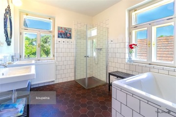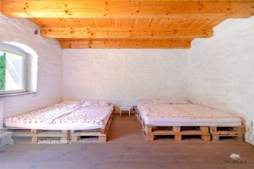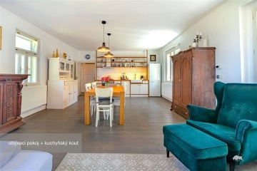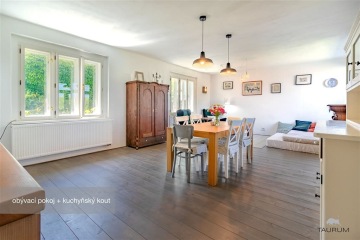 Představuji k prodeji kompletně zrekonstruovaný a zařízený dům s velkou zahradou na pomezí Vysočiny a Jižních Čech na adrese Křeč 98. Obec Křeč se nachází v pěkné, mírně zvlněné krajině 16 min jízdy východně od Tábora a 24 min západně od Pelhřimova. Dům se zahradou je umístěn na okraji obce ve slepé ulici. Charakteristika domu: Přibližně polovina domu (kamenná stavba) je z konce 19. století a druhá polovina (smíšená stavba) je z roku 1952. Z těchto původních stavení byly ponechány pouze obvodové zdi, čímž byl zachován původní ráz, a krov. Jinak byla stavba kompletně zrekonstruována. Rekonstrukce probíhala průběžně mezi lety 2015 až 2023. Dispozice domu: Dům je o dispozici 3+kk. V domě je: obývací pokoj s velkým oknem, s kuchyní, jídelním prostorem a s prostorem na spaní (37 m2) ložnice (22 m2) pokoj pro hosty s wc (21 m2) koupelna se sprchovým koutem a velkou 200l vanou (10 m2) wc technická komora kolna (12 m2) terasa (18 m2) Na pozemku stojí samostatný domek sloužící jako garáž nebo sklad na zahradní techniku (cca 20 m2). Nad domem je velký půdní prostor. Dům je částečně podsklepený, jsou zde 3 sklepní místnosti, celkem cca 26 m2. Technické informace: Dům je napojen na obecní kanalizaci (odpady z domu jsou svedené do jímky na pozemku a ta je napojena na zmíněnou kanalizaci) a na obecní vodovod. Navíc je na pozemku kopaná, přibližně 6 m hluboká studna. Plyn je na hranici pozemku, do domu není přiveden. Elektřina 230 i 400 V. V rámci rekonstrukce bylo v domě provedeno následující: kompletní rekonstrukce interiérů podlahy provětrávané na pěnoskle, krytina: dřevo a dlažba rozvody elektřiny (kromě sklepa), topení, vody i odpadů dveře a zárubně štuky topení koupelna, wc dřevěná okna zateplení stropů: foukanou izolací (zděná část) a minerální vatou (kamenná část) fasáda okapy plechová střešní krytina nad koupelnou s dvojitými PU panely doložení střešní krytiny pálené tašky Dům je ve vynikajícím stavu bez nutnosti jakýchkoli úprav s výjimkou omítky na zadní zdi, u které by byla vhodná oprava. Dům je vytápěn elektrokotlem, který je možné ovládat i na dálku přes aplikaci. Topné prvky v místnostech jsou radiátory s termostatickými hlavicemi, v koupelně je navíc elektrické podlahové topení. Ohřev vody je zajištěn bojlerem, umístěným ve sklepě pod koupelnou. V domě je také původní pec na chléb s nevyvložkovaným komínem. Internet zajišťuje místní poskytovatel za cenu 3.500 ročně. Dům má instalovaný alarm systém s přímým napojením na bezpečnostní službu. Pozemek, zahrada: Pozemek má celkovou výměru 3.091 m2. Zahrada kolem domu je velkorysá a je velmi dobře udržovaná, založená zahradní architektkou. Jsou zde jak vzrostlé stromy, tak i řada ovocných stromů a keřů a okrasných keřů. V přední části zahrady u domu je i prostor na dětské prvky, houpačky... Dům se prodává zařízený. PENB je třídy G. Uvedené výměry jsou orientační.