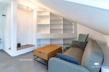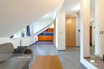 PRONAJATO - Nabízím k dlouhodobému pronájmu krásný a světlý podkrovní byt o aktuální dispozici 2+kk a podlahové ploše 68 m², situovaný ve 4. patře cihlového domu bez výtahu v klidné a žádané lokalitě Plzeň Slovany, ul. Zahradní 6. Byt se pronajímá částečně vybavený dle fotografií – k dispozici je kuchyňská linka se spotřebiči, pračka, postel, pohodlný gauč, dvě křesla s podnožkou, velké vestavěné skříně a další vybavení ve velmi dobrém stavu. Vytápění i ohřev vody zajišťuje vlastní plynový kotel, což umožňuje plnou kontrolu nad spotřebou a náklady. Lokalita nabízí výbornou občanskou vybavenost a skvělou dostupnost do centra města – zastávky MHD v docházkové vzdálenosti, možnost bezplatného parkování v okolí domu. Vhodné jak pro jednotlivce, tak pro pár hledající pohodlné a klidné bydlení s rychlou dostupností do centra. Náklady na bydlení: Měsíční nájemné: 14.000 Kč Zálohy na služby (vodné, stočné, odpad): 1.200 Kč Elektřina a plyn: se přepisují na nájemce Vratná kauce: 28.000 Kč (dva měsíční nájmy) Byt je volný ihned a připraven k nastěhování. Pro více informací nebo domluvení prohlídky mě neváhejte kontaktovat. Jiří Seidl TAURUM reality Uvedené výměry jsou orientační.