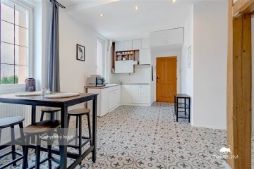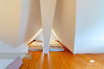 Představuji k pronájmu zajímavě řešený a kompletně zrekonstruovaný byt v Lipové ulici 40 v Plzni na Roudné. Byt je situovaný ve 4. patře cihlového domu. K dispozici má dva balkony přístupné z mezipatra domu, sloužící výhradně pro majitele tohoto bytu. Z těchto balkonů je pěkný výhled na střechy protějších domů a do vnitrobloku. Byt byl před lety vybudovaný z půdy a je v perfektním stavu, vhodném k okamžitému nastěhování. Jeho dispozice je 2+kk, v obývací části má vybudované spaní v patře a z ložnice se po dřevěných schodech dostaneme ještě do podkroví, ve kterém je možné vybudovat další prostor (pracovnu, šatnu nebo prostor pro spaní). V této místnosti je okno i radiátor, avšak není zde dostatečná světlá výška, proto neuvádíme tento prostor jako plnohodnotnou místnost. K bytu patří ještě technická místnost/komora na chodbě, kde je jak plynový kotel, který zajišťuje vytápění bytu, tak elektrický bojler sloužící pro ohřev vody a pračka. Dále k bytu patří veliký sklep umístěný v přízemí domu a za domem je společná menší zahrada. Všechna okna v bytě jsou plastová, v kuchyni a v obývací části je podlaha pokryta dlažbou, v ložnici je dřevěná podlaha. Kuchyňská linka je vybavena sklokeramickou varnou deskou. Elektrické rozvody jsou kompletně v mědi. Z vybavení na fotografiích v bytě zůstává gauč, v případě zájmu je možné některé další kusy nábytku odkoupit. Pravidelné náklady: Nájemné 16.900,Kč (hrazeno vždy do 20. dne v měsíci na následující měsíc dopředu při 2 osobách) Zálohy na služby. 1.000,Kč (hrazeny společně s nájemným do 20. dne v měsíci na následující měsíc) Elektřina a plyn dle spotřeby (budou přepsané na nájemníka) Při větším počtu osob v bytě bude navýšené i nájemné včetně zálohy na vodu. Jednorázové náklady na začátku: Vratná kauce: 20.000,Kč (při podpisu nájemní smlouvy k rukám pronajímatele) Jednorázový poplatek realitní kanceláři 16.900,Kč + DPH 21 %, celkem 20.449,Kč (na základě podepsané rezervační smlouvy do RK) Dům je umístěn v lokalitě na Roudné, kde bez problému zaparkujete. V centru města, v Kauflandu i na MHD jsme za pár minut. Skvěle dostupné jsou i Bolevecké rybníky s přírodou. Hana Procházková TAURUM reality