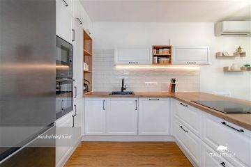 REZERVOVÁNO - Představuji k prodeji pěkný klimatizovaný byt s velkou terasou na adrese Na Radouči 1468, Mladá Boleslav. K předání bude byt k dispozici v srpnu 2026. Podívejte se na samostatnou stránku bytu odkaz ve videoprohlídce. Kompletní představu o dispozici a prostorovém uspořádání získáte z 3D virtuální prohlídky zde v inzerci. Byt se nachází v 1. patře zánovního bytového domu na okraji města přímo u Radouče. Dispozice bytu: Byt samotný má podlahovou plochu 69 m2 a k tomu navíc terasa dalších 20 m2. Původně byla dispozice bytu 2kk, nyní po rekonstrukci je 3kk plus 2 šatny (jeden pokoj je bez okna). V bytě je předsíň, koupelna s vanou a místem na pračku, samostatné WC, velký obývací pokoj s kuchyňským koutem a jídelním prostorem, ložnice (bez okna) se šatnou a dětský pokoj, také se šatnou. Okna bytu jsou orientovaná na západ s výhledem do zeleně. K bytu patří vyhrazené parkovací stání přímo před domem. Technické informace: Dům je ve vynikajícím stavu, je z roku 2013 a je s výtahem. Byt je po rekonstrukci (2023), při které byla změněna dispozice. Podlahy jsou kryté vinylem. Okna jsou plastová s dvojskly. Vytápění i ohřev vody jsou zajištěny dálkově, v bytě jsou radiátory a v koupelně je topný žebřík. Rozvody elektřiny jsou měděné, jistič 3x25A. Byt se prodává vybavený, součástí ceny bytu je tedy následující nábytek a spotřebiče: kuchyňská linka včetně: lednice, mrazáku, indukční varné desky, elektrické trouby, mikrovlnné trouby a myčky jídelní stůl a židle gauč dvoulůžko klimatizace PENB je třídy B. Byt bude k předání k dispozici přibližně v srpnu 2026. Pro koupi bytu zajišťuji kompletní realitní a právní servis. Kontaktujte mě pro domluvení prohlídky: Jan Štěpánek TAURUM reality