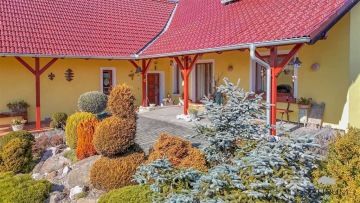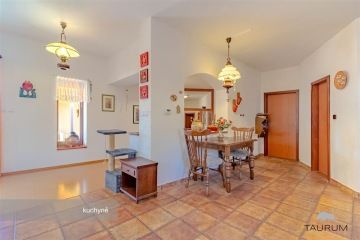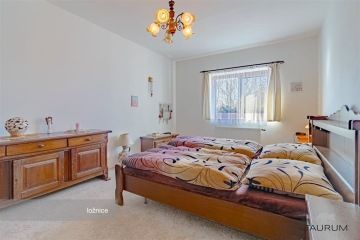 REZERVOVÁNO - Představuji k prodeji krásný prostorný dům s pěknou zahradou na adrese Rybničná 29 . Obec Rybničná se nachází 8 km od Bochova, kde je veškerá občanská vybavenost. Necelých 20 km je odtud do Karlových Varů, lázeňského města, které nabízí spoustu kulturního i sportovního vyžití. Samostatně stojící rodinný dům je velmi pěkně řešený a je ve výborném stavu. Má dvě nadzemní podlaží, dva sklepy a u domu velkou terasu. Dispozice domu: Přízemí domu má dispozici 3+1 a podlahovou plochu 164 m2. Po vstupu vejdeme do předsíně, vedle které se nachází prostorná šatna, ze které je vstup do sklepa. Z předsíně se dostaneme do chodby, kde se vlevo od vstupu nachází ložnice a pracovna, vedle pak velká šatna s oknem, ze které je vstup do druhého sklepa. Dále je zde samostatné WC, koupelna s umyvadlem, vanou, sprchovým koutem a dalším WC. Pak následuje komora a dále vejdeme do kuchyně, za kterou se nachází kotelna a následně do místnosti, která je dominantou domu, a to velkého obývacího pokoje s krbem. Z obývacího pokoje je vstup na slunnou terasu o výměře 38 m2, orientovanou na jih. V patře domu je velký prostor o velikosti 139 m2, připravený pro vestavbu další bytové jednotky. Na to byl v minulosti vytvořen projekt i vydáno stavební povolení a stavba byla již zahájena, k realizaci ale nedošlo. Nyní jsou v patře 2 velké místnosti, 2 komory, technická místnost a vstupní chodba. Tento prostor má samostatný vchod z druhé strany zahrady, kde je i samostatný vjezd a je tak vhodný pro vícegenerační bydlení, pronajímání či podnikání. Technické informace: Dům byl přestavěn v roce 2001. Je zděný (postavený z cihlových bloků) a je ve výborném stavu. Okna jsou dřevěná s dvojskly. Vytápění je řešeno tepelným čerpadlem a dále krbem, který je také napojen na otopný systém a je jím možné vytopit celý dům. Ohřev vody zajišťují solární panely na střeše, tepelné čerpadlo, příp. elektrický bojler, umístěný v kotelně. Odpadní vody jsou odváděny do čističky odpadních vod, umístěné na pozemku. Zdrojem vody v domě je vrtaná studna (30 m), umístěná rovněž na pozemku. Elektřina je 230V i 400V. Střecha je z pálených glazovaných tašek. Podlahy jsou betonové, podlahovými krytinami jsou dlažba, korek a koberce. Dům je vkusně zařízený nábytkem, který může být součástí prodeje. U domu je krásná zahrada, která je velmi pěkně udržovaná, se spoustou okrasných keřů. Obec se nachází v chráněné krajinné oblasti Slavkovský les. Je zde překrásná příroda, v okolí je spoustu cyklostezek a tři golfová hřiště. Na jih od obce se nachází zámek Javorná a Zámecký rybník. Je odsud jen kousek do Doupovských hor. Pokud hledáte prostorný rodinný dům, s pěknou zahradou a širokými možnostmi využití, na klidném místě, obklopený krásnou přírodou, může být tento dům vhodný právě pro vás. Pro koupi domu zajistíme kompletní realitní a právní servis a financování hypotečním úvěrem. Kontaktujte mě pro domluvení prohlídky JUDr. Jitka Štenglová TAURUM reality Uvedené výměry jsou orientační.