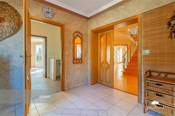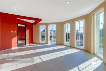 REZERVOVÁNO - Ve Vejprnicích nabízím k prodeji prostorný rodinný dům s velkou zahradou, skýtající velmi zajímavé propojení komfortního bydlení a možnosti podnikání. Pro lepší představu o vile je Vám k dispozici i 3D virtuální prohlídka, video prezentace a fotogalerie vč. záběrů pořízených dronem. Ucelenou prezentaci pak můžete zhlédnout na odkaze, který je součástí video prohlídky. LOKALITA: Vejprnice jsou vyhledávanou lokalitou se skvělou dopravní dostupností. Od Plzně a dálnice D5 se nachází jen 5 minut jízdy autem. K dispozici je také vlakové a autobusové spojení. Do Plzně lze dojet i pohodlně na kole díky přímému napojení cyklostezky. Obec nabízí občanskou vybavenost: škola a školka, lékař, obchody, restaurace, obecní úřad, pošta, sportoviště. Dům stojí v rezidenční čtvrti Vejprnic na adrese Křimická 756. DISPOZICE STAVBY: Dům tvoří dvě části, každá s vlastním vchodem. Starší, dvoupodlažní, o výměře 202 m² a dispozici 6+kk. Dominantou je prosvětlený obývací pokoj s napojením na jídelnu a kuchyň a přímým vstupem na venkovní terasu. V přízemí se dále nachází předsíň, vstupní hala, toaleta, spíž a pracovna. V 1. patře se pak nachází 4 pokoje, šatna, koupelna s masážní vanou a sprchovým koutem, samostatná toaleta, šatna a terasa. Z chodby 1. patra je vstup na půdní prostory. Díky své velikosti poskytuje dům nadstandardní prostor pro pohodlné bydlení. Novější část je o výměře 92 m² a dispozici 2+1, kde koupelna a kuchyň jsou připraveny k finalizaci dle představ budoucího majitele. Tato část může sloužit nejen jako samostatné bydlení pro členy rodiny, ale např. pro pronájem nebo jako kanceláře a díky samostatnému vstupu nenaruší soukromí hlavní části domu. Na pozemku se dále nachází technická místnost o výměře 18 m² a garáž o výměře 22 m². Součástí ceny je vybavení a nábytek na fotografiích (zejm. kompletně vybavená kuchyňská linka). TECHNICKÉ INFORMACE: Dům je napojen na obecní vodovod, kanalizaci, elektřinu. Obě části domu mají vlastní plynový kotel na vytápění a ohřev vody, ve starší části doplněné výkonným krbem, který dostatečně vytopí celý dům. Přítomné radiátory jsou tak určeny spíše k přitápění. Novější část má topení podlahové s regulací v každé místnosti, ale i zde je připraven vývod pro případný krb. Celý objekt je chráněn elektronickým zabezpečovacím systémem a požárním hlásičem. PENB tř. D. POZEMEK: Dům stojí na oploceném pozemku o rozloze 1667 m², zajišťující klid a soukromí. Nachází se zde parkovací plocha za elektrickými pojezdovými vraty, navazuje terasa a zahrada s okrasnými dřevinami a jezírkem, která poskytuje příjemné místo k relaxaci. Na několika místech zahrady je vyvedena voda a elektřina. Díky své velikosti, atraktivní poloze i rychlému napojení na Plzeň a dálnici je tento dům skvělou volbou nejen k pohodlnému bydlení velké rodiny, ale i jako reprezentativní a praktické zázemí pro podnikání. Zavolejte mi, prosím, pro domluvení prohlídky. Mgr. Lukáš Pytlík TAURUM reality Uvedené výměry jsou orientační.