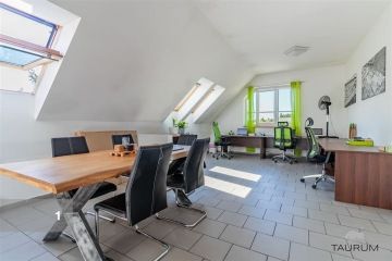 Představuji k prodeji provozní areál se zpevněnou plochou a administrativními, výrobními a skladovacími prostory na adrese Vojkovice 161 u Kralup nad Vltavou. Lokalita: Areál o celkové ploše pozemku 12.027 m2 je přístupný po asfaltové silnici přibližně 10 minut jízdy od Kralup nad Vltavou a 14 minut jízdy od okraje Prahy. Pozemek areálu je kompletně rovinatý, zpevněný betonem a celý oplocený s otevíratelnou vjezdovou bránou. Kolem areálu jsou louky a porost se stromy. Budovy: V rámci areálu jsou umístěné následující budovy: 1 dvoupodlažní částečně podsklepená zděná administrativní budova s kancelářemi a zázemím (šatny, sprcha, wc, kuchyňka) o celkové podlahové ploše 285 m2, budova je ve vynikajícím stavu 2 kancelářské prostory ve zděné budově o celkové výměře 124 m2, velmi dobrý stav, kuchyňka, umývárna 3 zděná hala o výměře 587,6 m2 4 nová stanová plachtová hala s hliníkovou konstrukcí o výměře 449,5 m2 5 zděná kotelna T trafostanice zajišťující připojení elektřiny Dále jsou na pozemku přístřešky tmavě zelené plochy na fotce z dronu. Před vjezdem do hlavního pozemku jsou na levé i pravé straně samostatné oplocené pozemky. Inženýrské sítě: Areál je napojen na elektřinu a obecní vodovod. Odpady jsou svedeny do vyvážecí jímky. Plynová přípojka není k dispozici. Technické informace: Vytápění je zajištěno výkonným kotlem na tuhá paliva umístěným v kotelně. Ve výrobní hale jsou topná tělesa “Sahara”. V administrativní budově a v kancelářské části haly jsou radiátory. Ohřev vody je zajištěn bojlerem. Právní informace: Na nemovitosti jsou nyní zástavní práva ve prospěch banky, která budou v rámci prodeje areálu vymazána. Areál je vhodný na provozování výroby a skladování. Velkou výhodou je okamžitá použitelnost areálu bez dalších investic a vynikající dopravní dostupnost. Zařízení a materiál vyobrazený na fotografiích bude současným majitelem odvezen. Areál je k dispozici ihned po dokončení prodeje. Pro koupi areálu zajišťuji kompletní realitní a právní servis. Kontaktujte mě, prosím, pro domluvení prohlídky: Jan Štěpánek TAURUM reality PENB je v přípravě, proto uvádíme třídu G Uvedené výměry jsou orientační. Cena v inzerci je uvedena bez DPH 21%. V případě, že bude nemovitost kupovat plátce DPH, bude prodej v režimu přenesené daňové povinnosti dle §92d zákona o DPH.